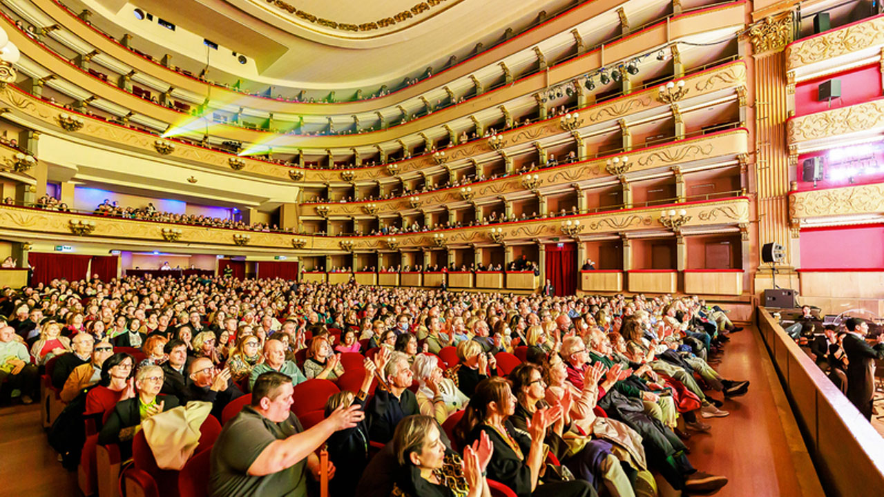 ![]() 图5:二零二三年四月十日下午,美国神韵纽约艺术团在意大利佛罗伦萨威尔第剧院(Teatro Verdi)进行了第二场演出,全场再次大爆满。(大纪元) |