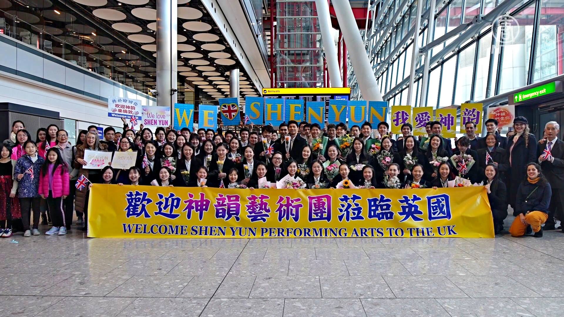 二零二三年四月十二日,神韵艺术团抵达英国伦敦。她们一出现在机场大厅,现场粉丝热情挥手致意,为艺术家献上鲜花以及美好的祝愿。