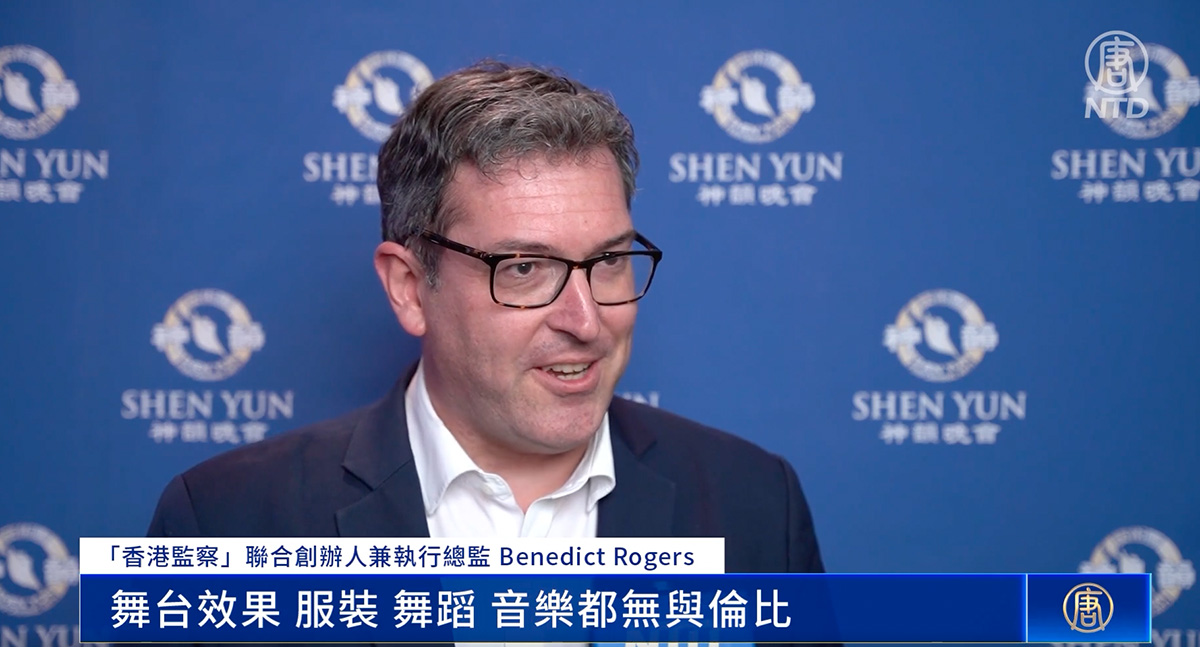 英国保守党人权委员会副主席,“香港监察”联合创办人兼执行总监罗杰斯(Benedict Rogers),今年是第三次观赏神韵的演出。犹如第一次看神韵,他惊叹道:“演出简直太精彩了!”