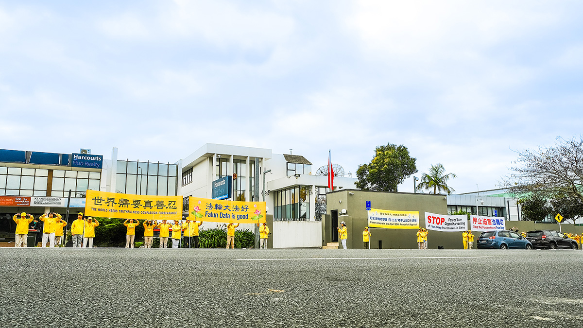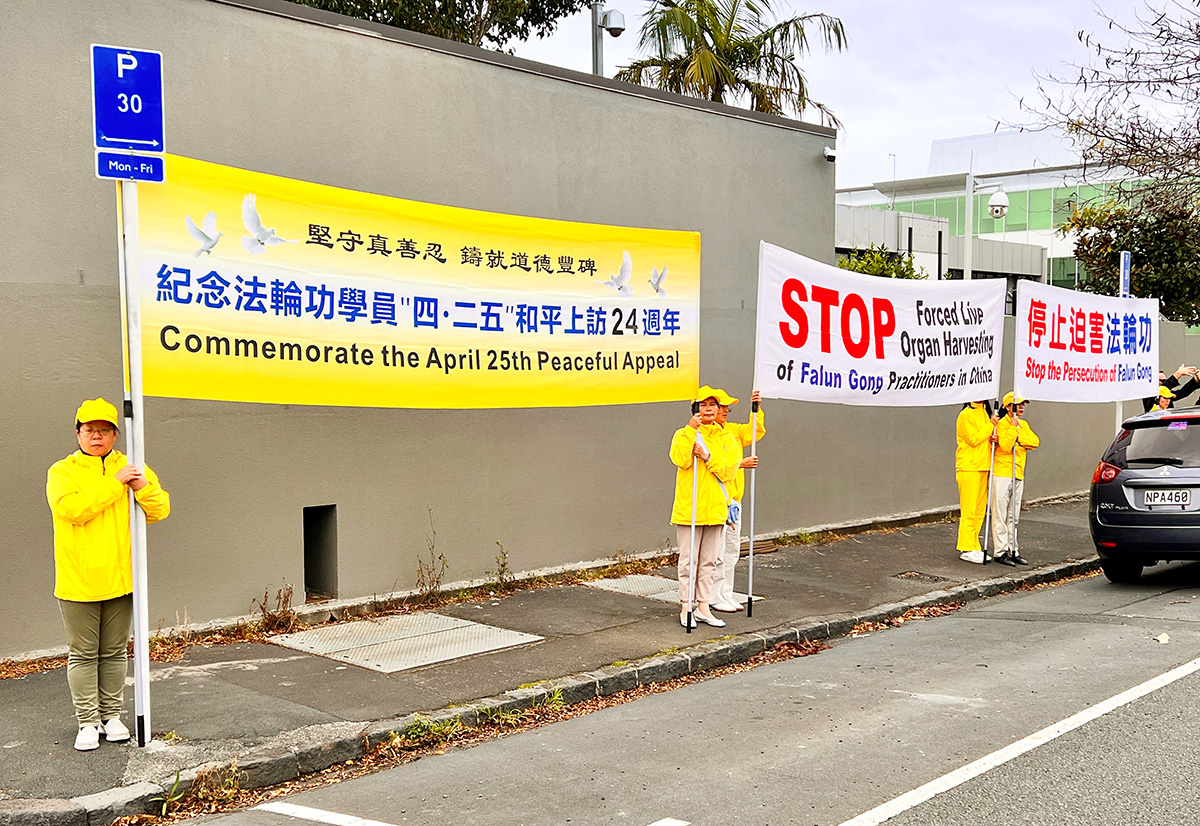 【明慧网二零二三年四月二十六日】(明慧新西兰记者站报道)二零二三年四月二十五日,在新西兰最大城市奥克兰,部分法轮功学员在中领馆前,举行了纪念二十四年前的发生的“四·二五”事件的活动。 因为这一天是中国人以平和、理性的方式向政府抗议,并最终以和平方式解决问题的标志,曾被称为“万人和平上访”。法轮功学员希望更多的新西兰人来了解真相,关注中共对法轮功学员长达二十四的残酷迫害