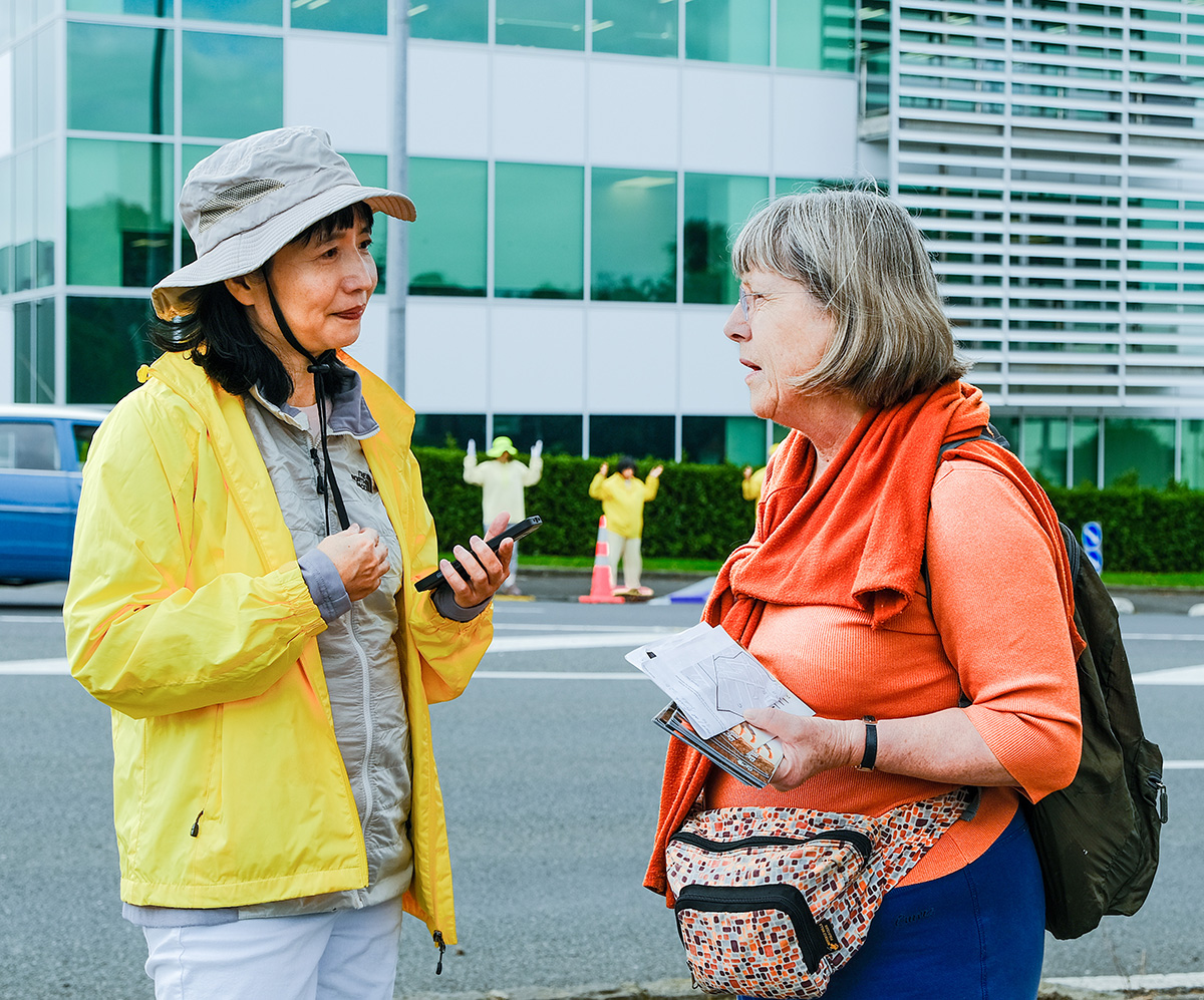 她接着说:“中共非常腐败,(政权)都是建立在谎言之上的,其所作所为都是反(against)人民的,而不是服务于他们。中共自私且自负(self glorification),独裁者们就像“皇帝的新衣”没有穿衣服的皇帝,所有人都看到这一点,只是有些人不愿意去思考,可是今天我看到有人为法轮功学员停下脚步,他们得到了我们新西兰人民的支持,他们没有在浪费时间,即使中共不想听(真相)。”