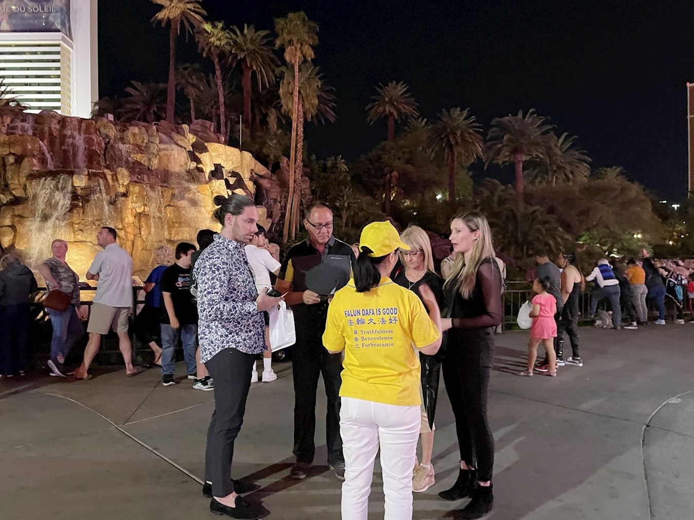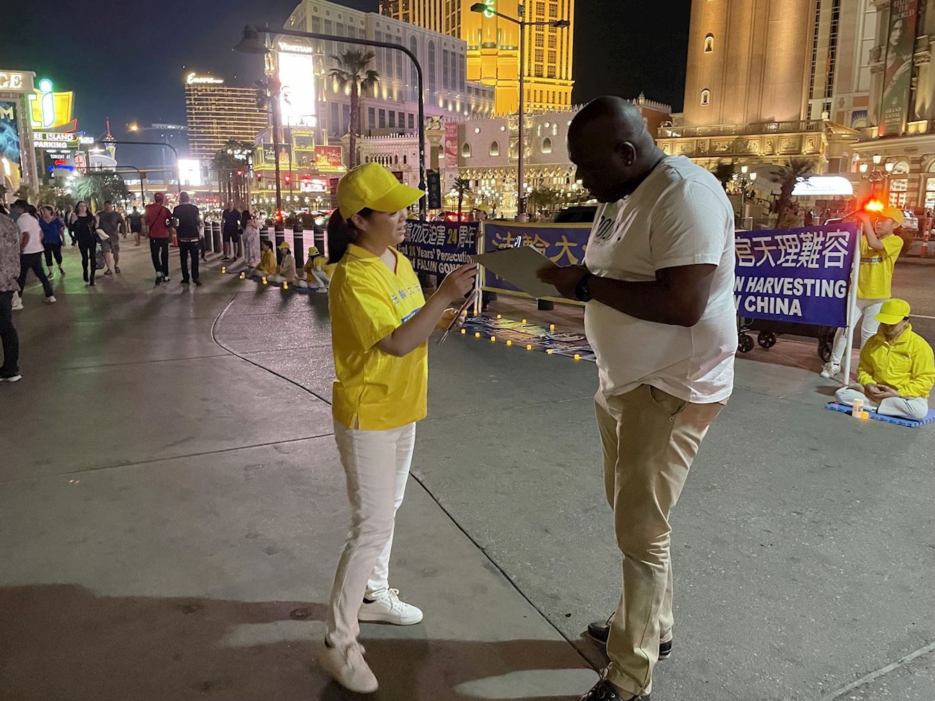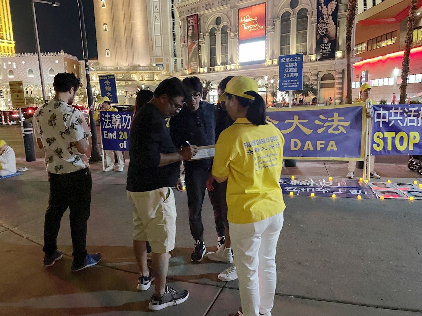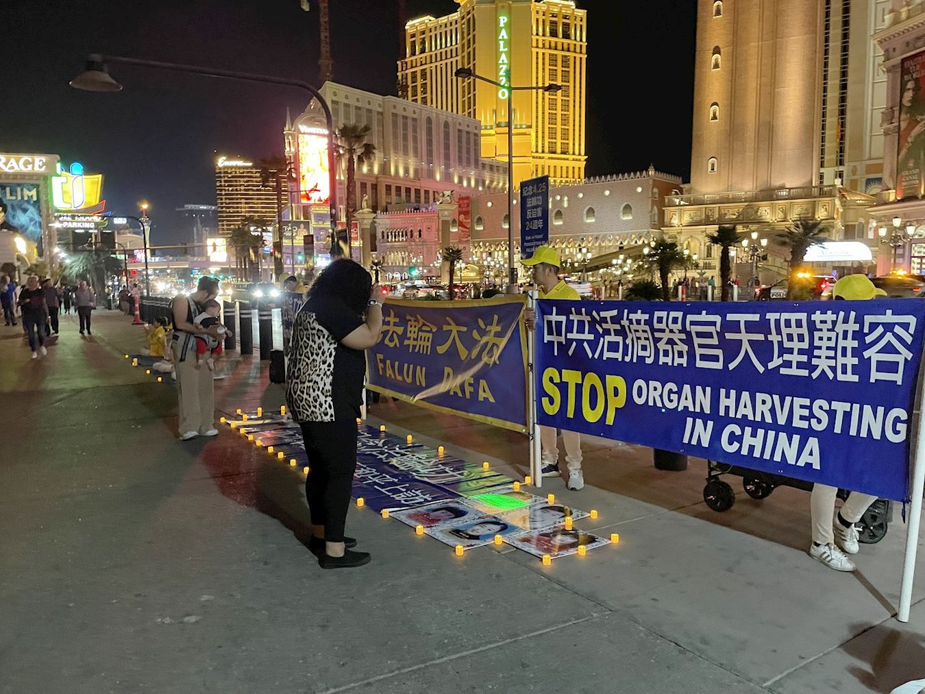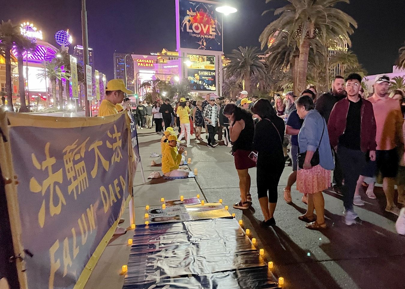 【明慧网二零二三年四月二十六日】二零二三年四月二十二日傍晚,部分拉斯维加斯法轮功学员,在市区最繁华的赌场大道举行持续三小时的炼功和集会,功法演示和烛光夜悼。传承“四·二五”和平理性讲真相的精神,呼唤正义良知;呼吁各界制止中共对法轮功的残酷迫害
