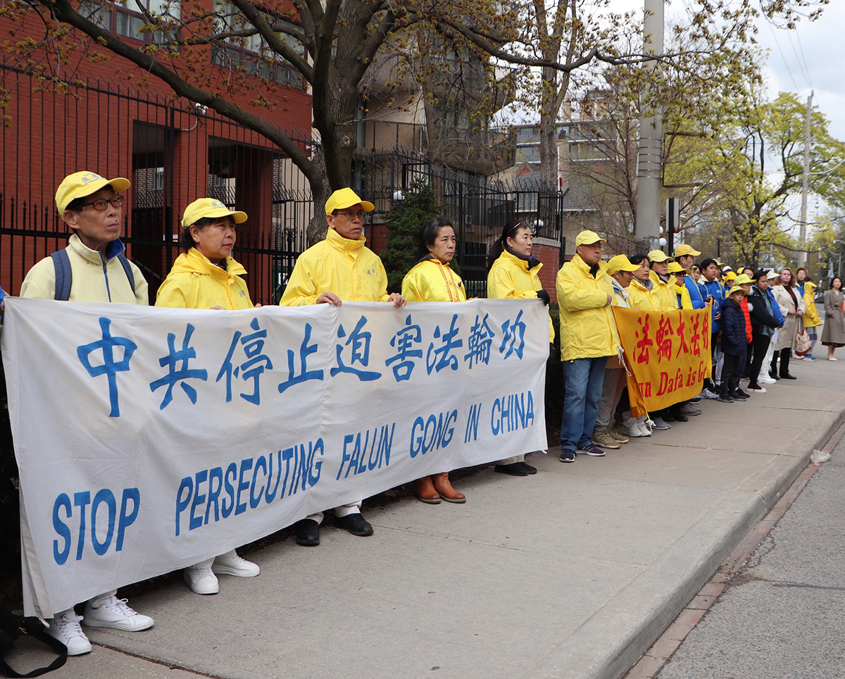 ![]() 图1~8:二零二三年四月二十五日上午多伦多部分法轮功学员在中领馆前举行了集会 |