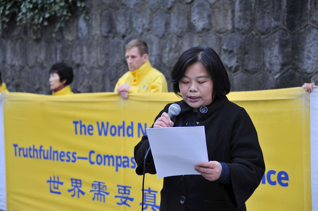 ![]() 图5:大纪元代表陶琼在集会上发言 |