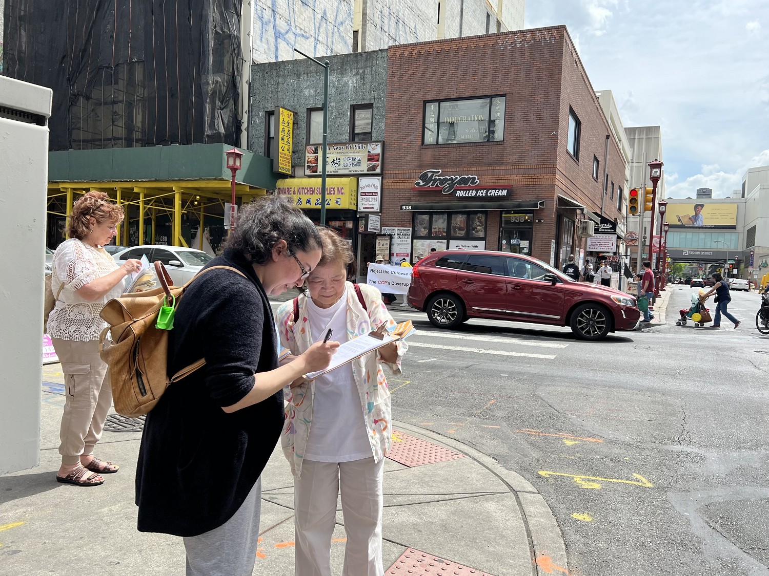 正值春末夏初旅游旺季的周末,费城华埠旭阳高照,人流如织,过往民众了解真相后纷纷签名表示支持,当天还有十七位华人明白真相后,当场退出中共的党、团、队等相关一切组织。