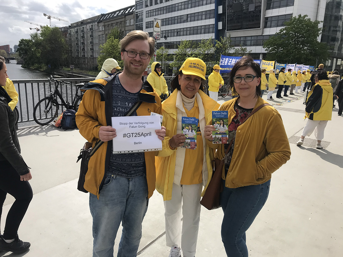 ![]() 图3:在德国首都柏林,民众声援法轮功学员和平抗争和纪念四·二五的活动 |