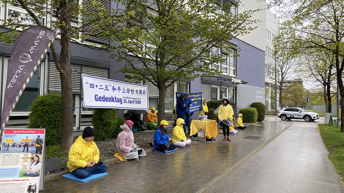 二零二三年四月二十五日,德国法轮功学员分别在上述五座城市的中共大使馆和领事馆前,举办纪念四·二五和平上访活动。谴责中共二十四年来迫害法轮功学员以及活体摘取法轮功学员器官的罪恶。过往民众了解了事实真相后,纷纷声援法轮功学员的和平反迫害活动。