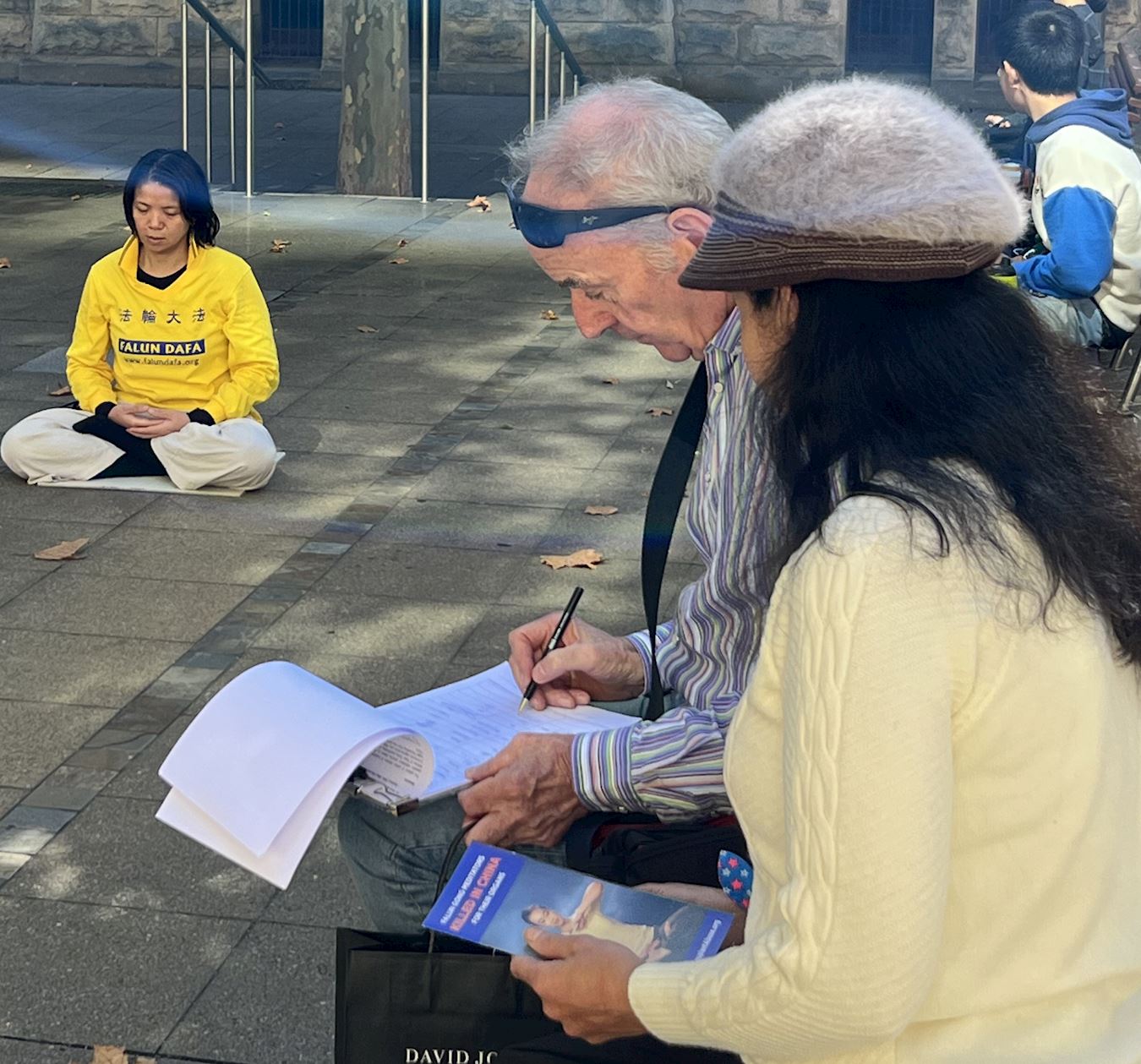 身着黄色T恤衫的法轮功学员祥和的炼功场面也吸引了另一位摄影爱好者克里斯(Chris),他当即签名支持反迫害,因为他认为,人人有追求美好、追求信仰自由的权利。“人们不应该这样被迫害,这是不能容忍的。”克里斯还希望以后也能拍到更多法轮功学员活动的照片,并请求下次活动前一定通知他。