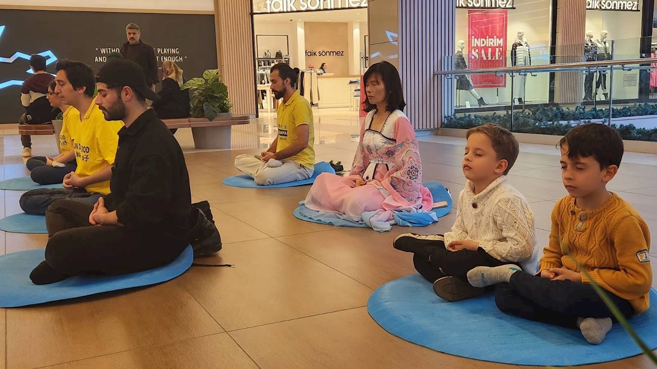 一对七岁的双胞胎托普拉克(Toprak)和德尼兹(Deniz),跟着法轮功学员学炼了第五套功法。托普拉克说,感到非常平静。他们的母亲哈蒂斯·哈尼姆(Hatice Hanım)说:“两个孩子在上小学一年级,他们很难集中注意力,我在家为他们尝试做过各种冥想等训练,他们这是第一次能够坐这么久,我非常惊讶。”