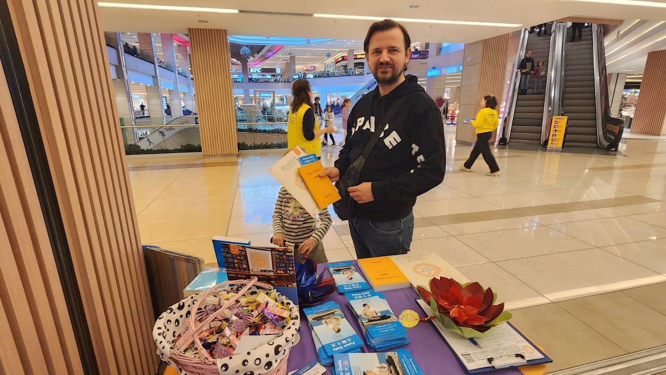 穆斯塔法·巴赫蒂亚尔(Mustafa Bahtiyar)是一位旅游专业人士,多年前在互联网上他发现了法轮功,他很高兴在这个活动中能见到法轮功学员。他表示要看法轮功书籍、明慧杂志和宣传册,进一步了解法轮大法。