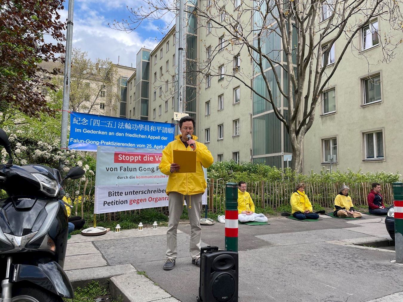 奥地利法轮大法学会发言人回顾了一九九二年以来法轮大法在中国的传播以及七年后在中国发生的迫害。他呼吁尽快结束这场残酷的迫害。