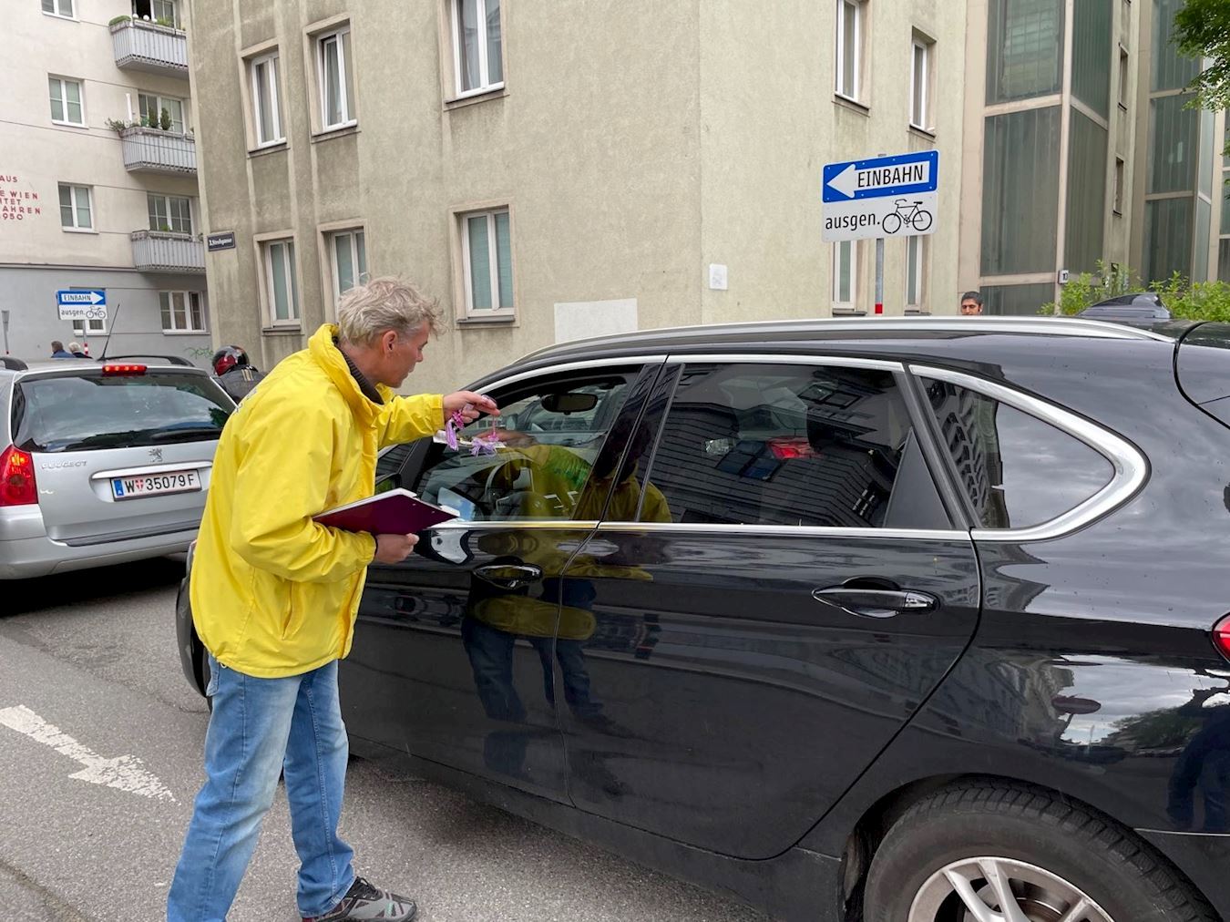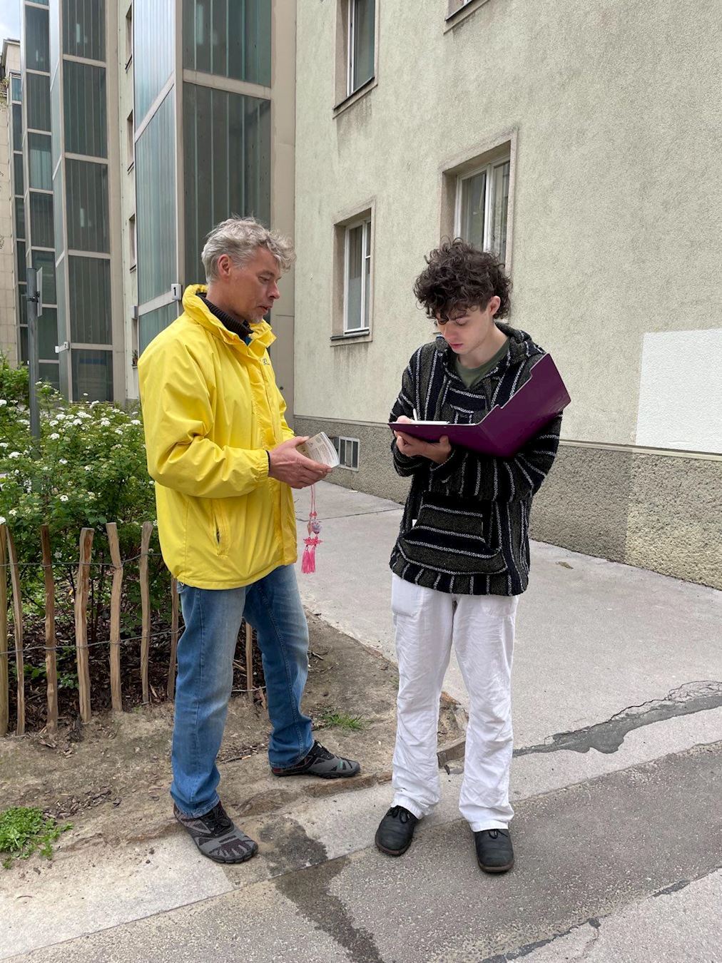 六年来克里斯蒂安坚持每周和其他同修一起来中领馆,希望引起人们对迫害的关注。几位路人亲切地和她打招呼,他们在前几次的请愿书上都签了字。
