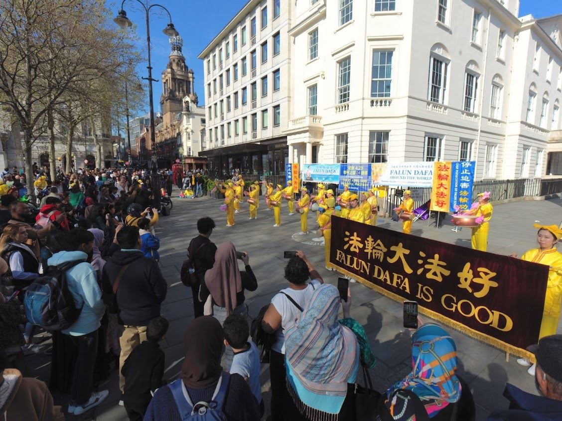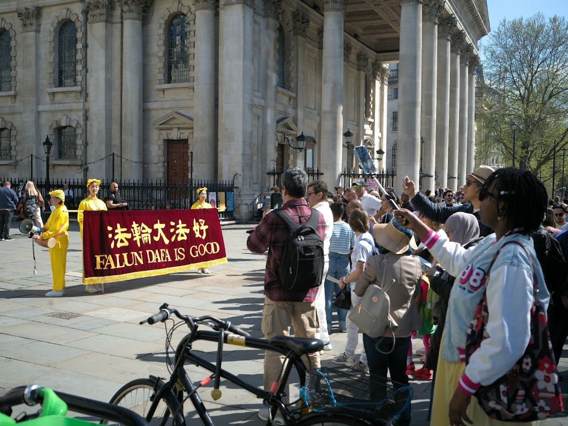 活动当天伦敦难得地晴空万里,大街上游人如织。学员们举行了新闻发布会、功法展示、腰鼓队、独唱表演等活动,吸引了很多路人的关注。