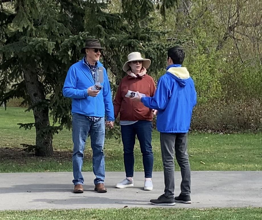 家住附近的阿尔杰(Argel)先生来自菲律宾,来卡尔加里已经十五年。今天他很高兴收到印有“法轮大法好”吊坠的小莲花。他说在维多利亚和卡尔加里的牛仔节游行见过法轮功的腰鼓队,也听说过中共迫害法轮功,他希望迫害尽早结束。