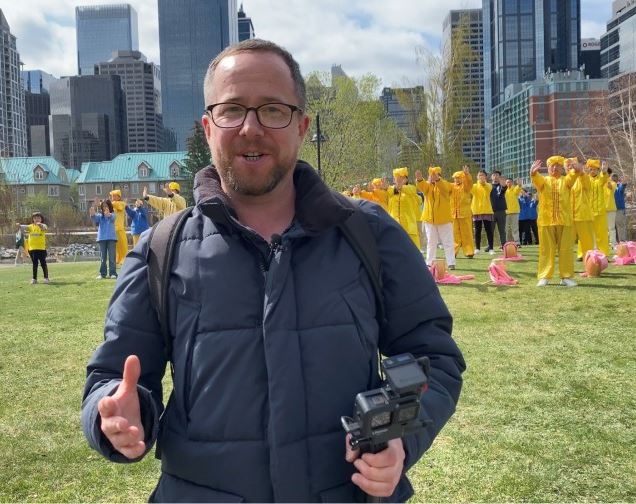 “YGZ路易斯”频道的播主路易斯先生,是来自英国的“中国通”,今天偶尔路过王子岛公园,看到法轮功学员在这里打坐,举行庆祝活动,非常感兴趣。他还在现场拍了很多录像。