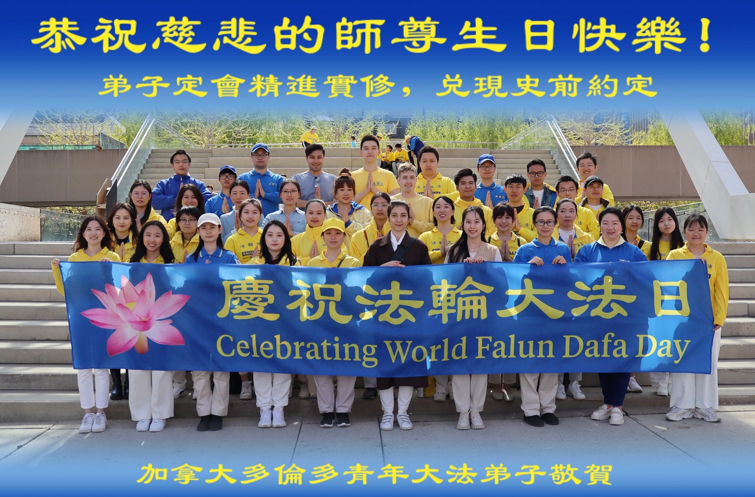 ![]() 图1:多伦多青年大法弟子恭祝师尊生日快乐! |