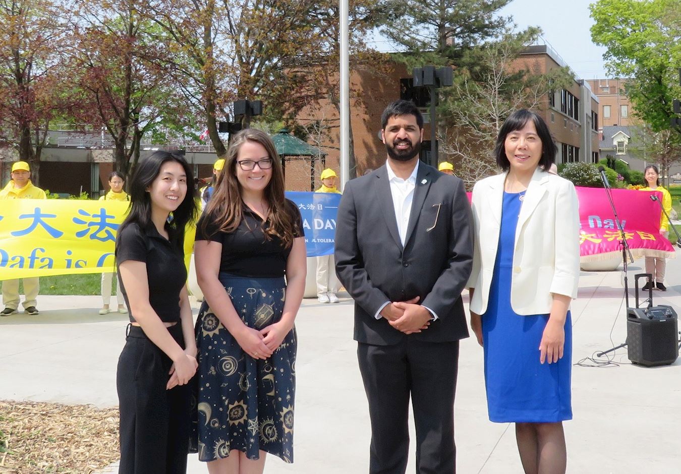 加拿大法轮大法学会负责人之一戴工羽女士在发言中说:“一直以来支持法轮大法的康沃尔市,我们表示感谢。”