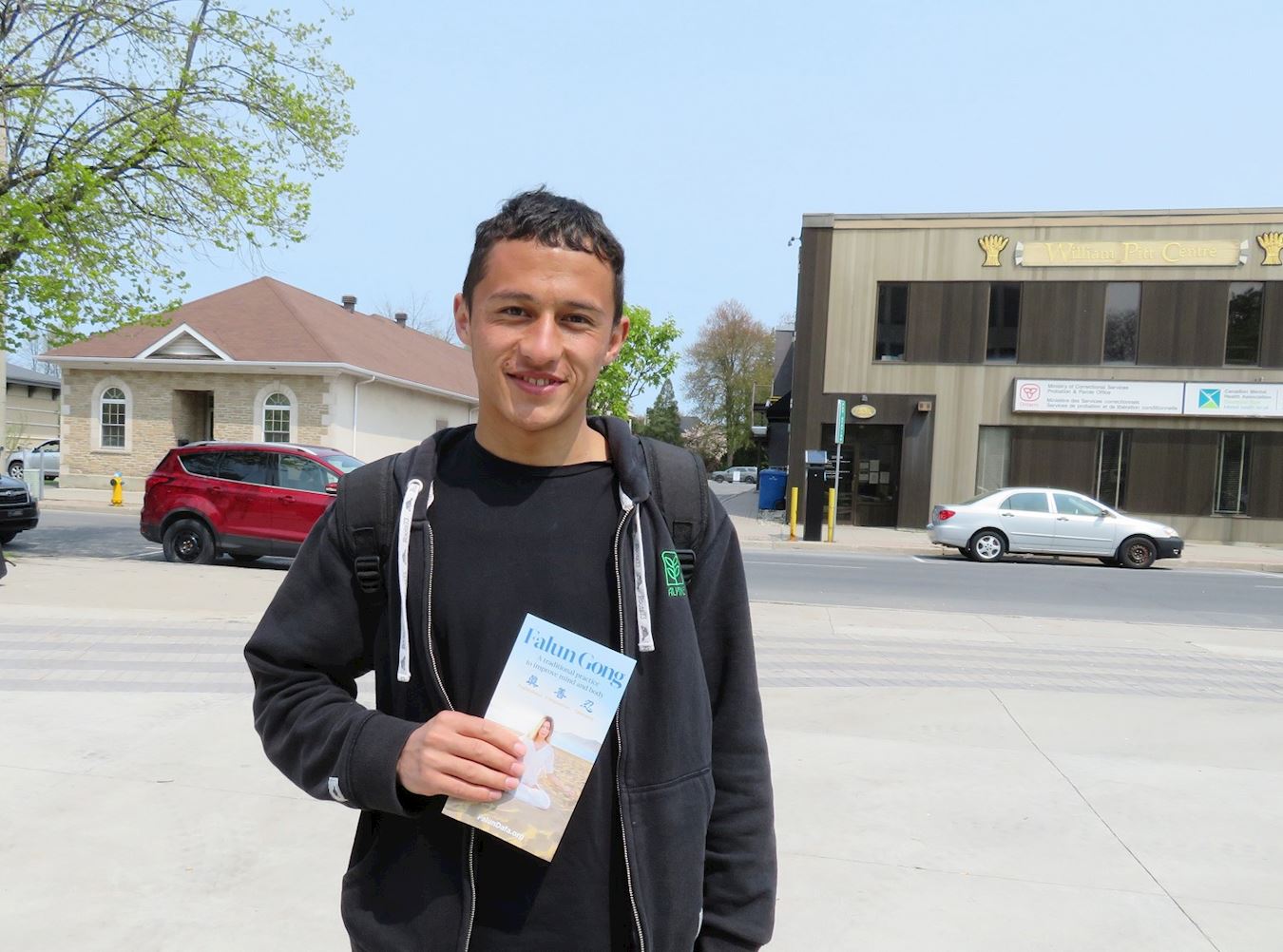 升旗仪式吸引了许多康沃尔市民前来了解法轮功。Abdusatar Hassani是一位大学生。他告诉记者:“找到真、善、忍,是人一生中最重要的事情。这些价值观将会指导你的人生。”