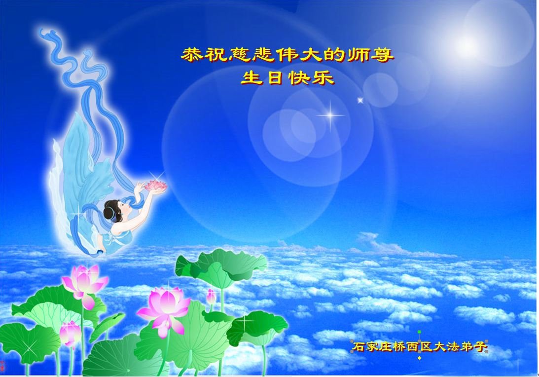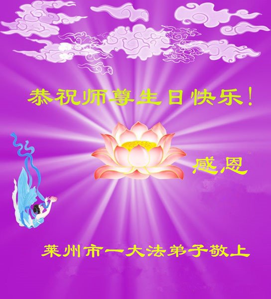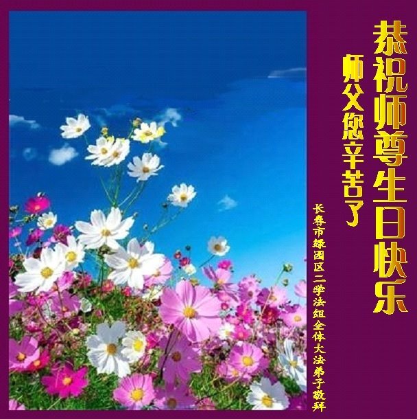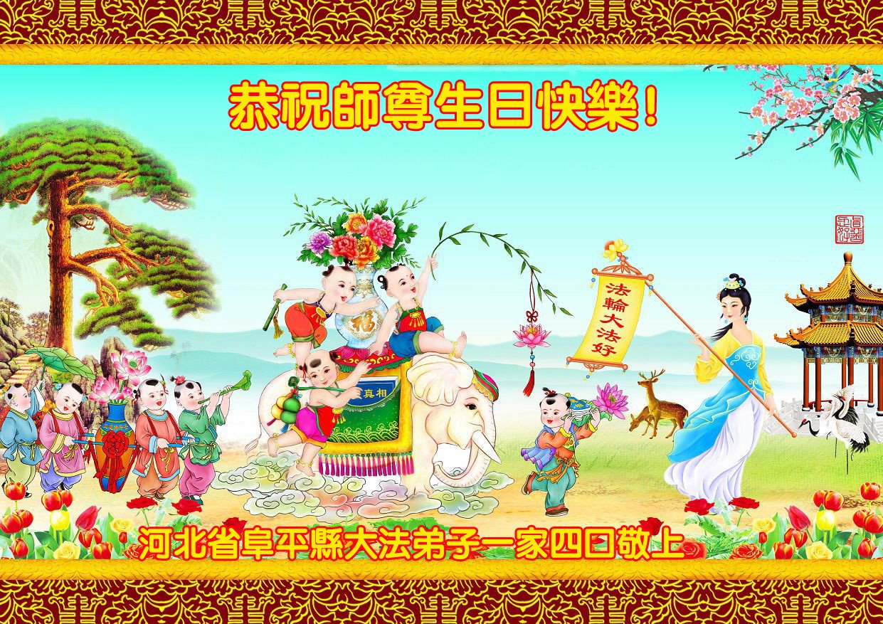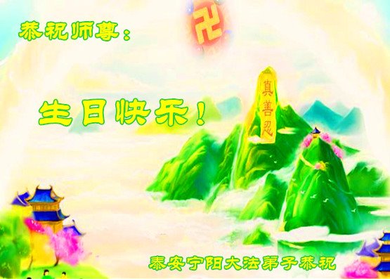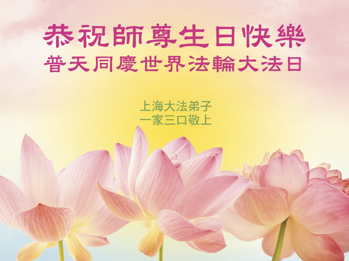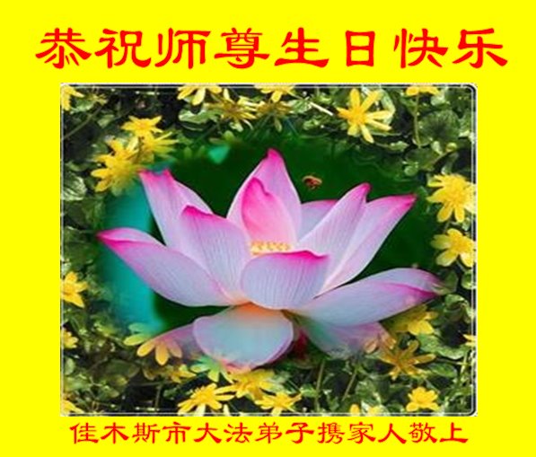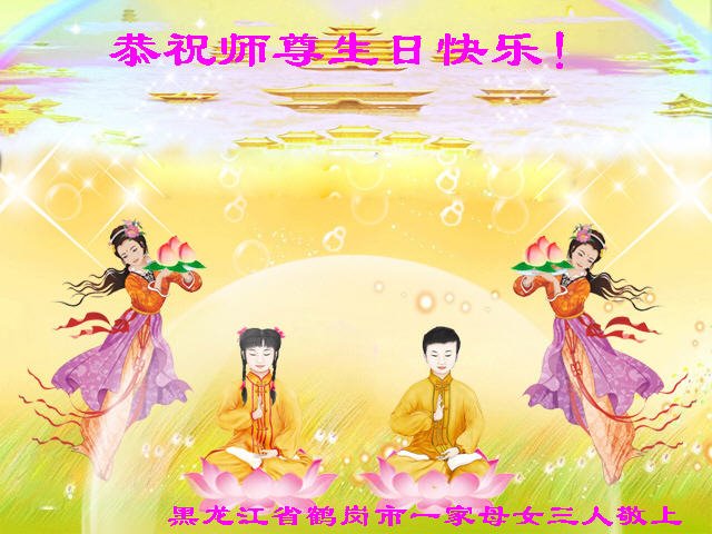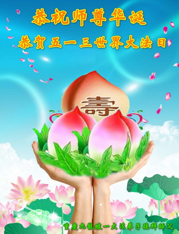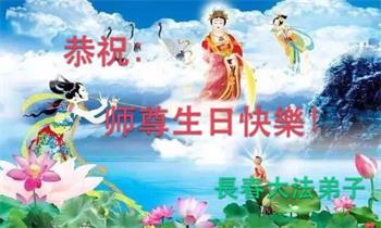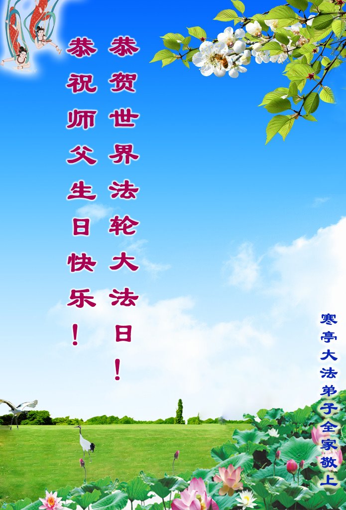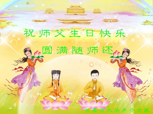 感谢李大师一直在看护着我们全家及所有的世人!使我们全家平安的度过了这乱世的年头。在此我作为一名大法弟子家属衷心的恭祝李大师生日快乐!