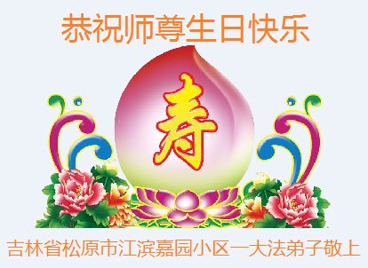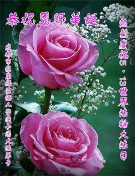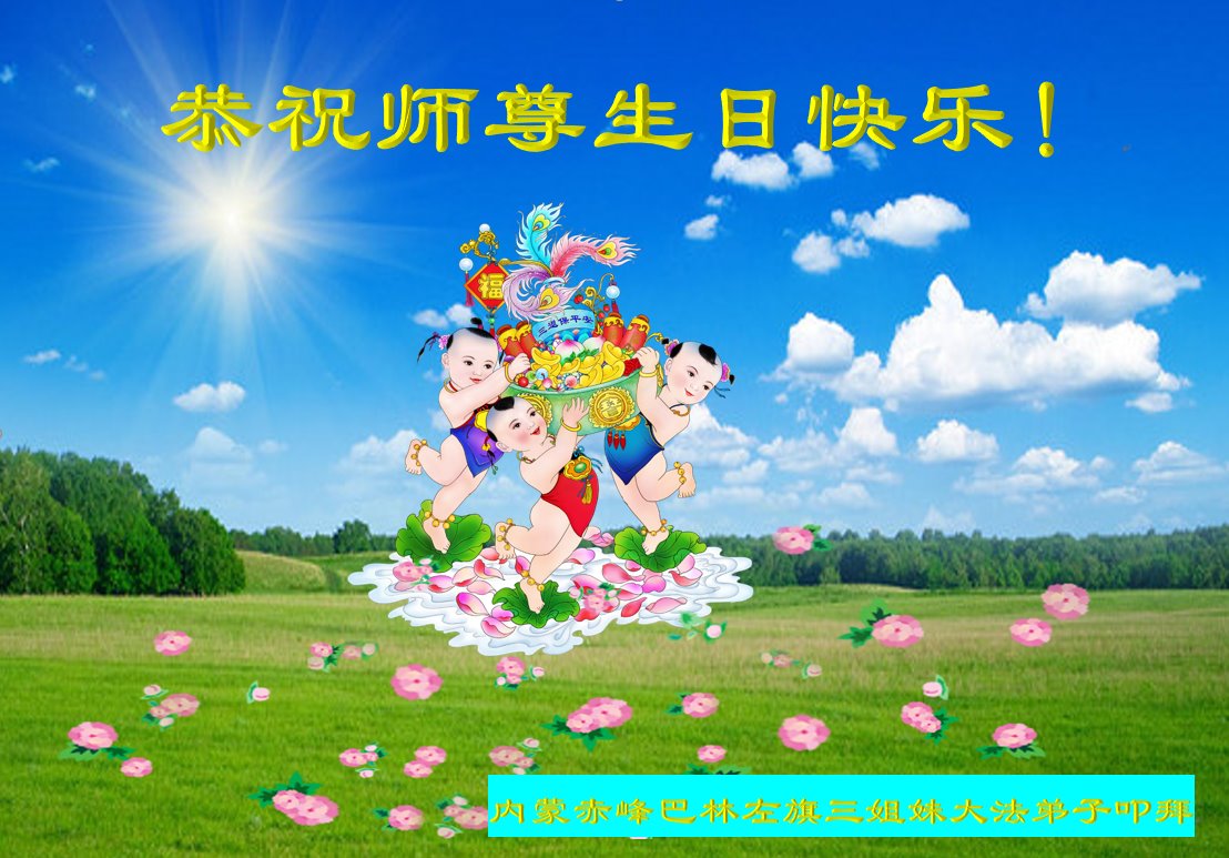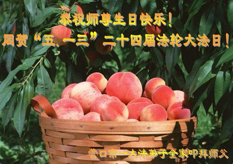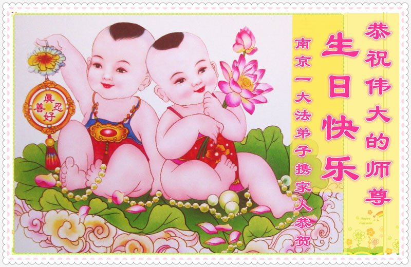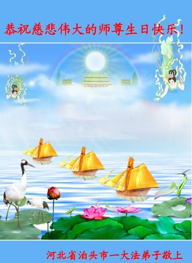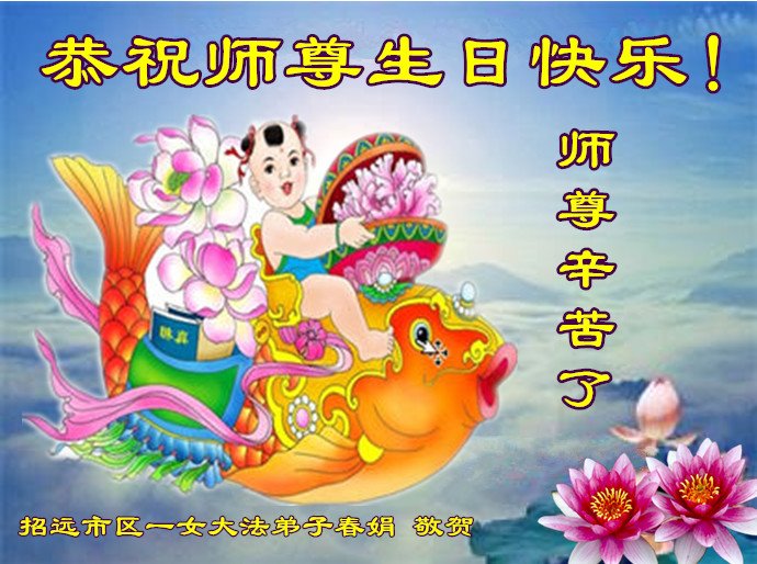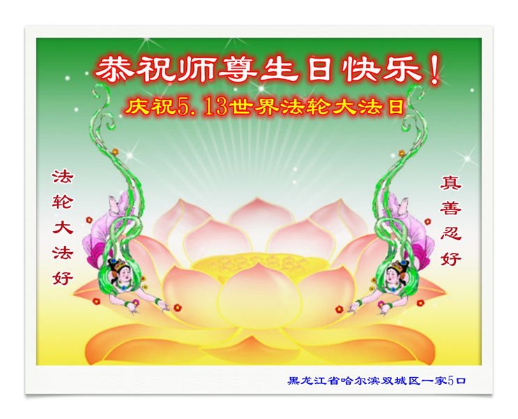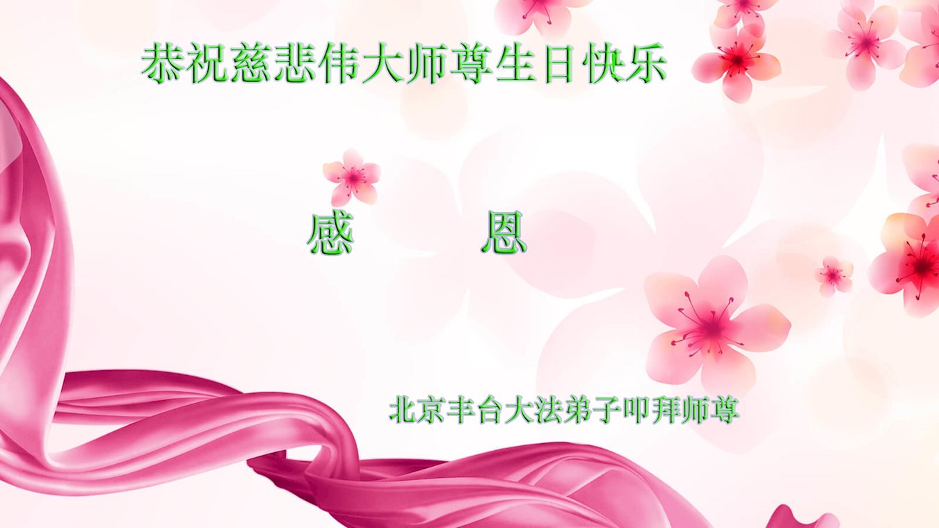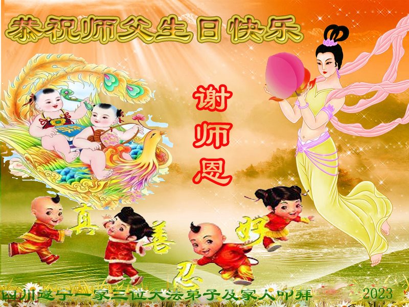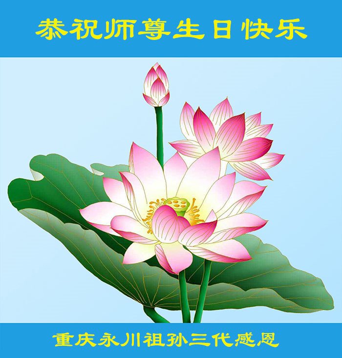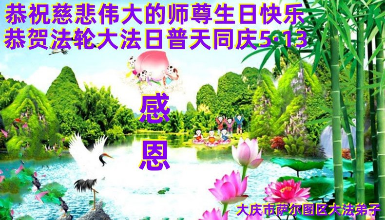感谢李大师一直在看护着我们全家及所有的世人!使我们全家平安的度过了这乱世的年头。在此我作为一名大法弟子家属衷心的恭祝李大师生日快乐!