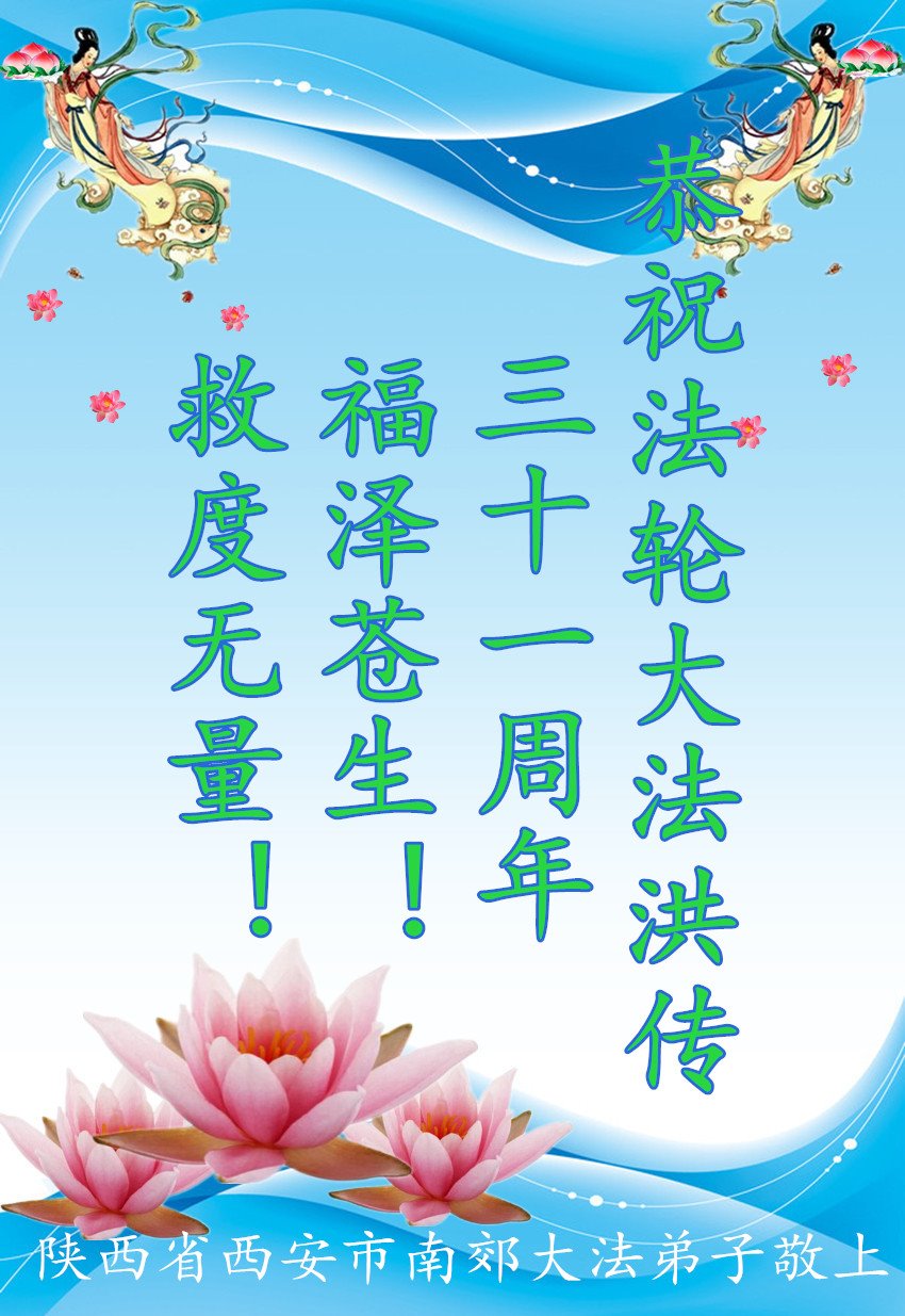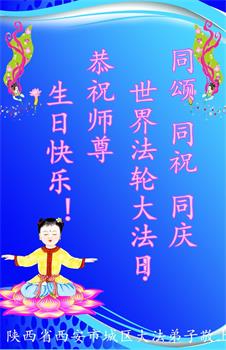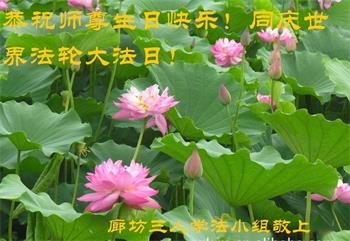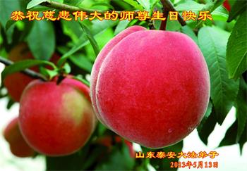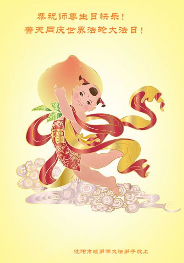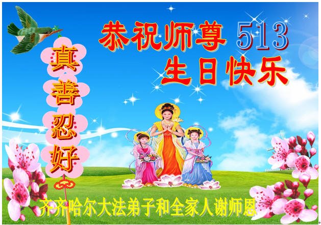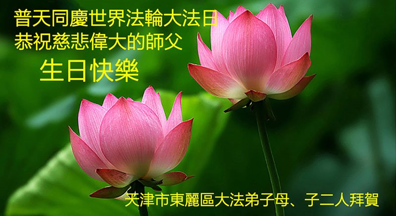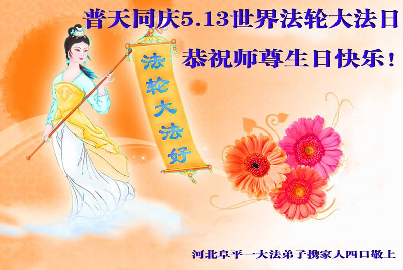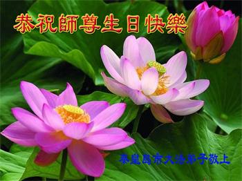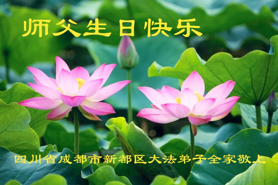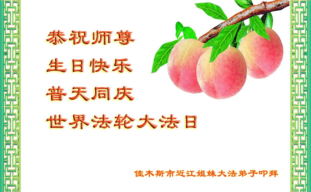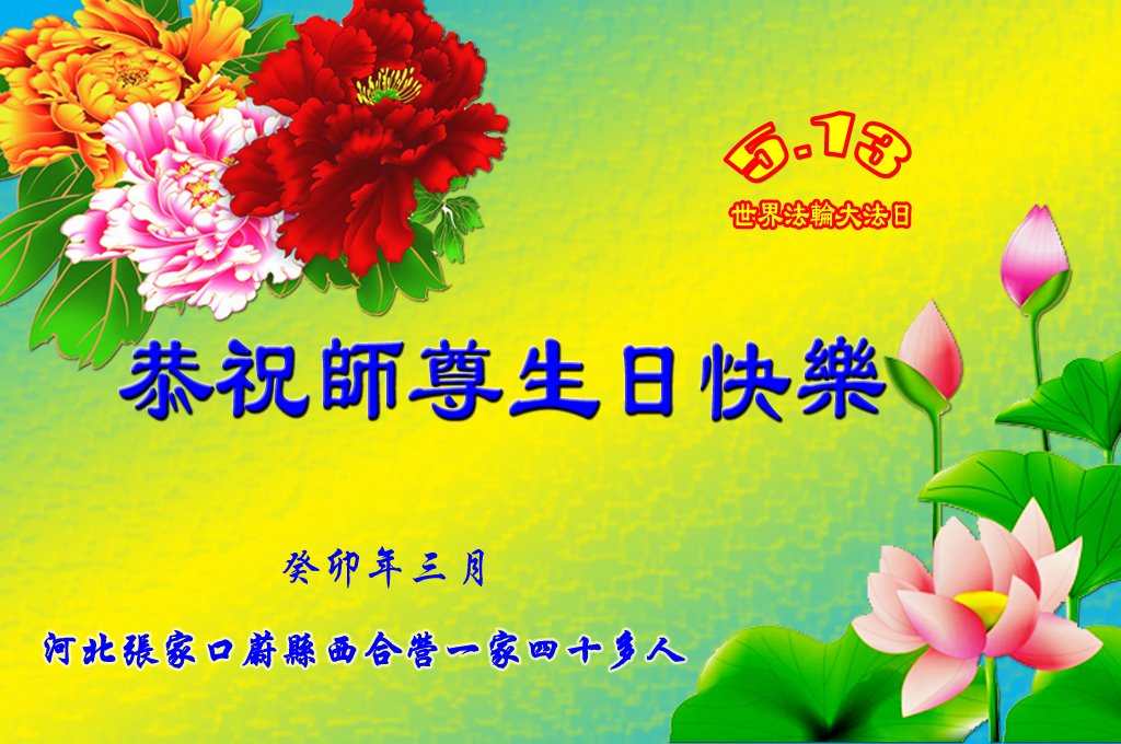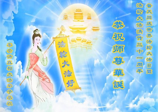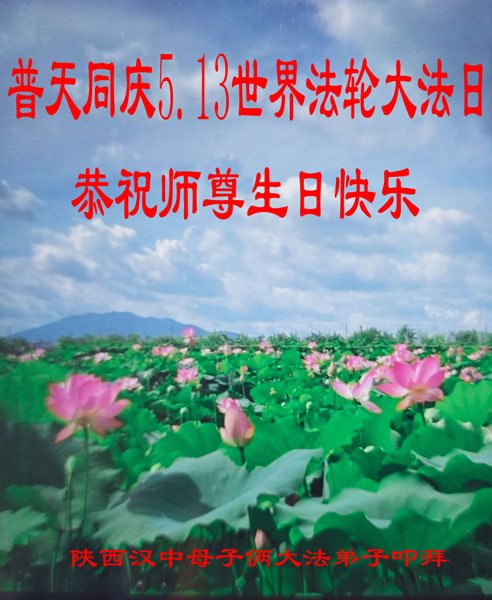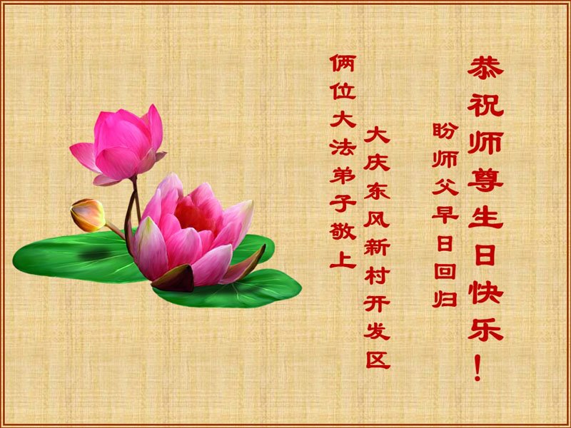 感谢李大师一直在看护着我们全家及所有的世人!使我们全家平安的度过了这乱世的年头。在此我作为一名大法弟子家属衷心的恭祝李大师生日快乐!