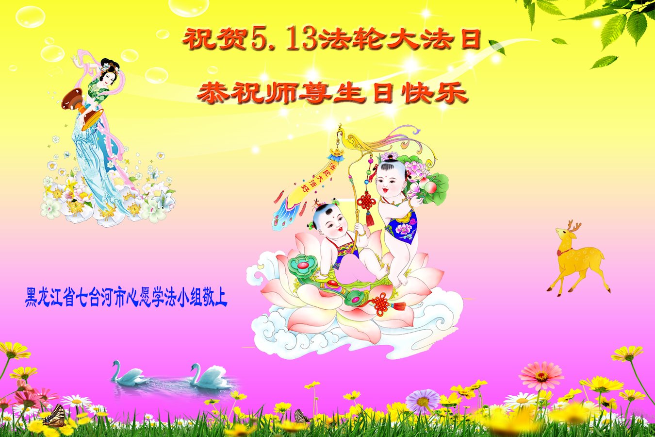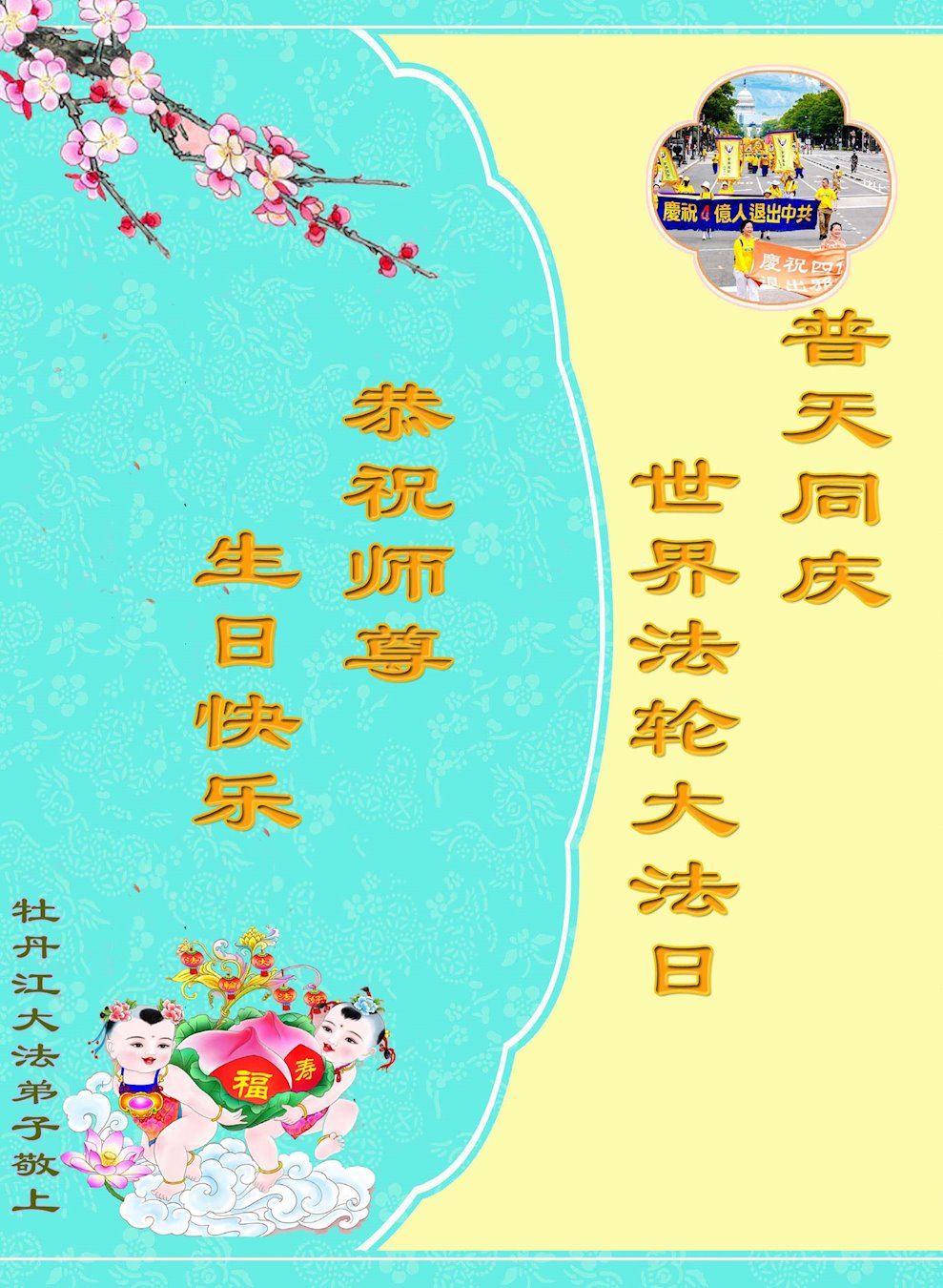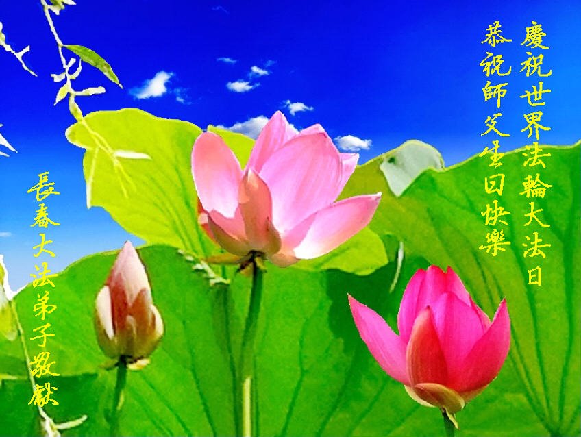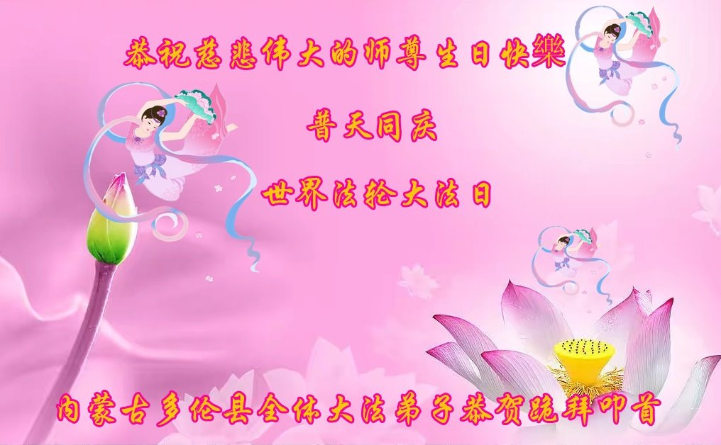 在此,敬贺法轮大法日!恭祝慈悲伟大的师父生日快乐!