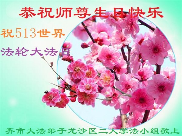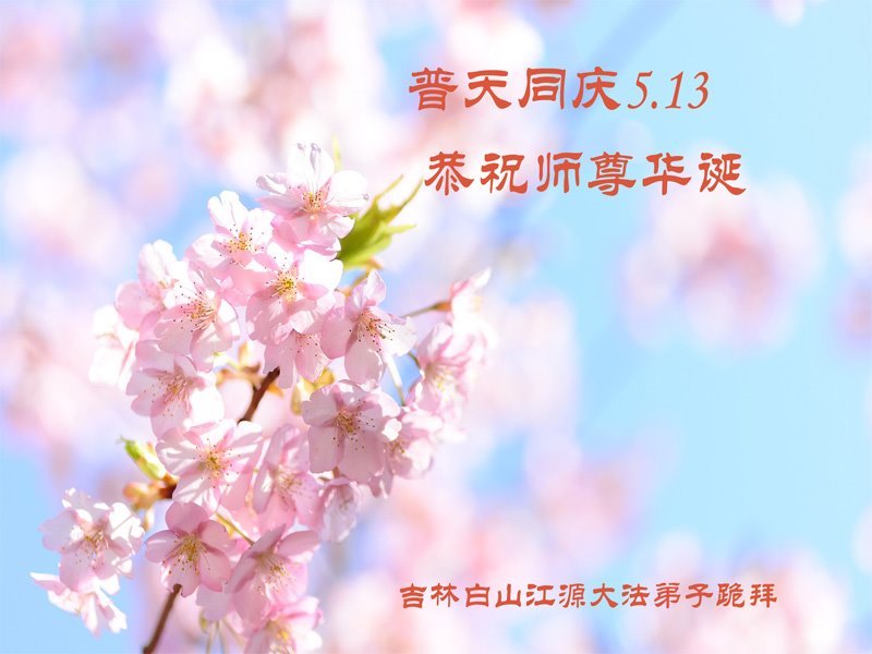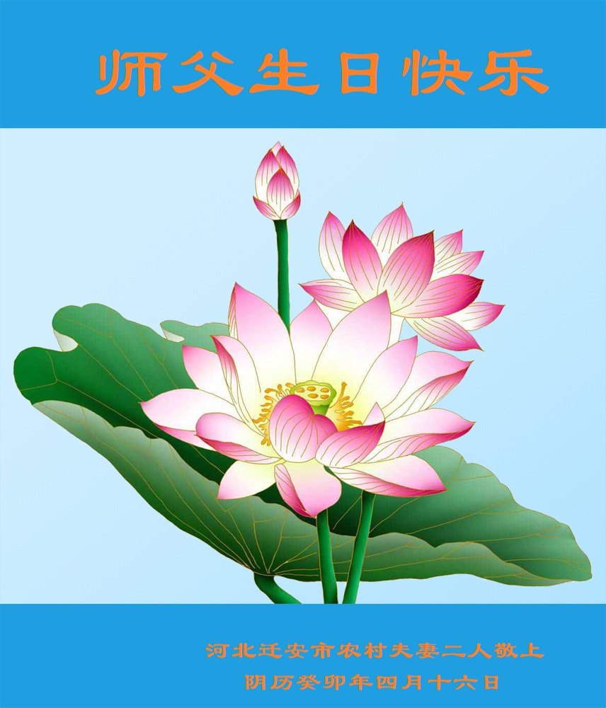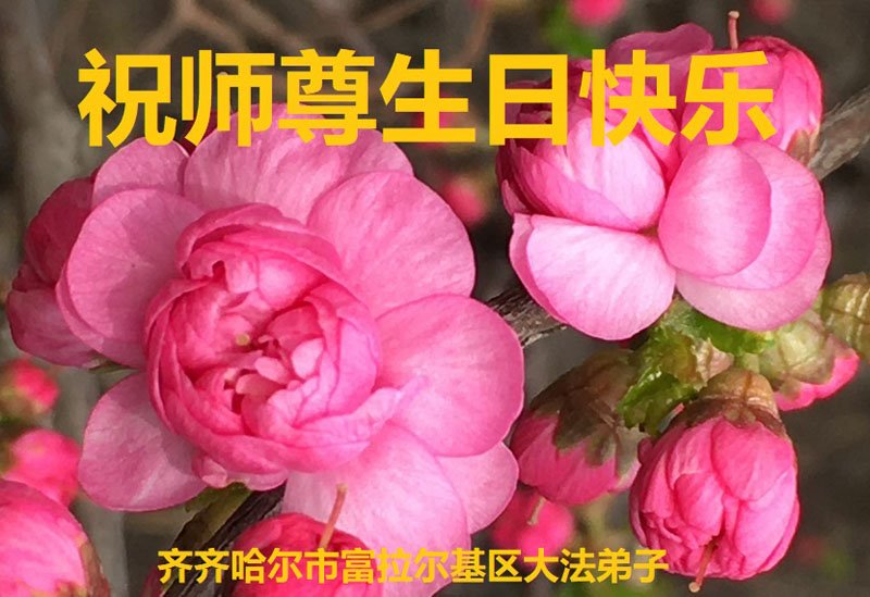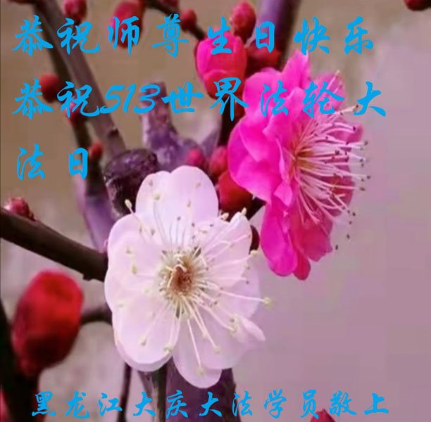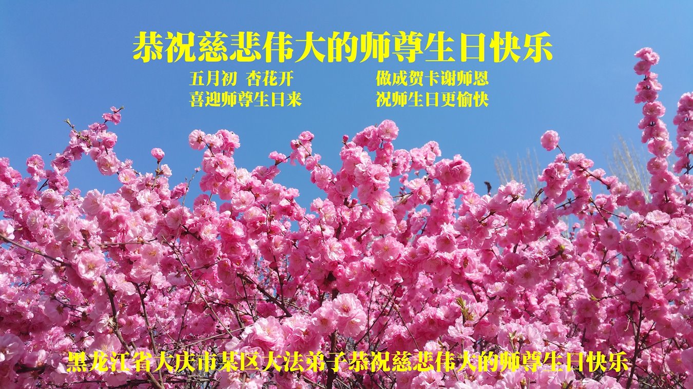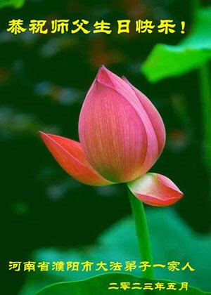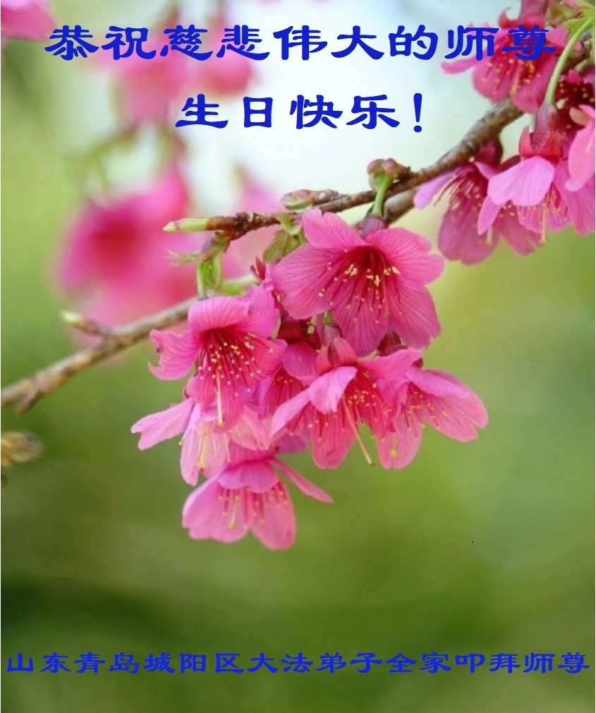 尊敬的李大师好!我是大法弟子的家人。明媚的五月,春风送暖,百花盛开,姹紫嫣红,春意盎然,喜逢大师华诞,诚心恭贺李大师生日快乐!大师新年发表的《为什么会有人类》的文章,我拜读了,并且听了好多遍。这是大师赐予人类的宝物,深感大师佛恩浩荡!感谢大师的慈悲救度!我也要做一个正直、善良、知感恩的好人。我天天诚心敬念”法轮大法好、真善忍好”九字真言。有大师的护佑,我们都是幸运的,个个幸福安康。