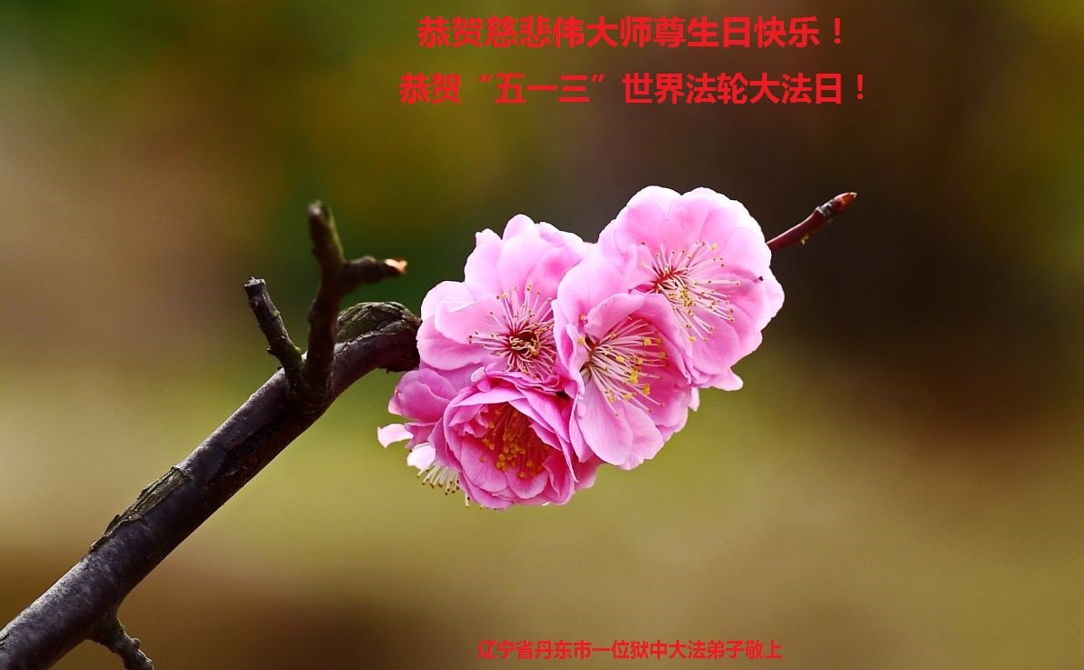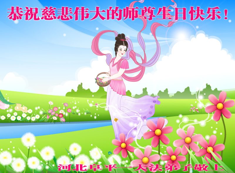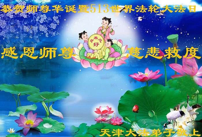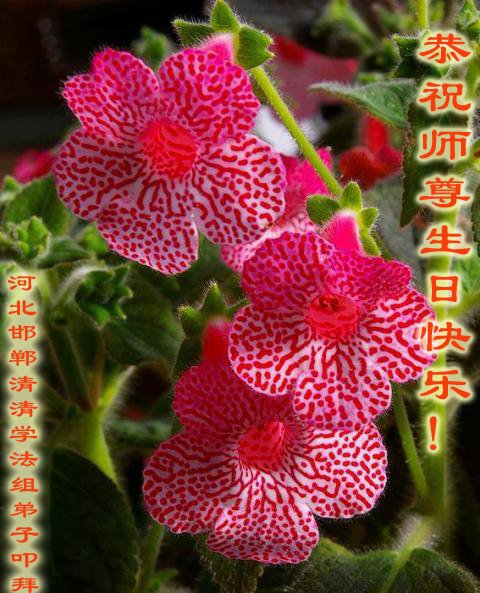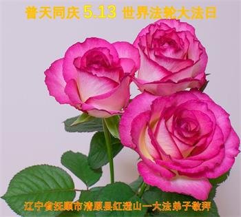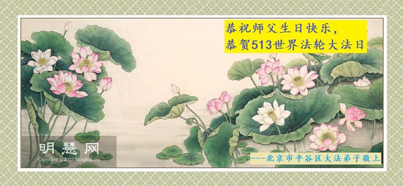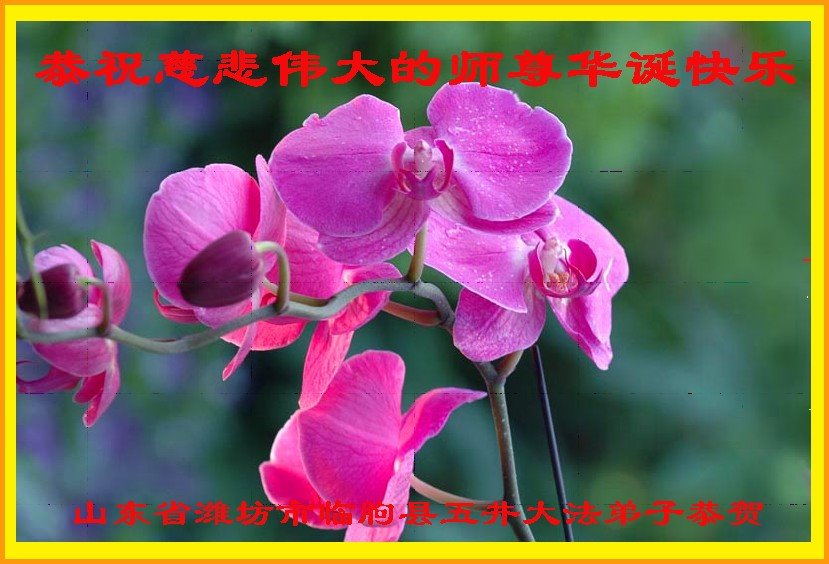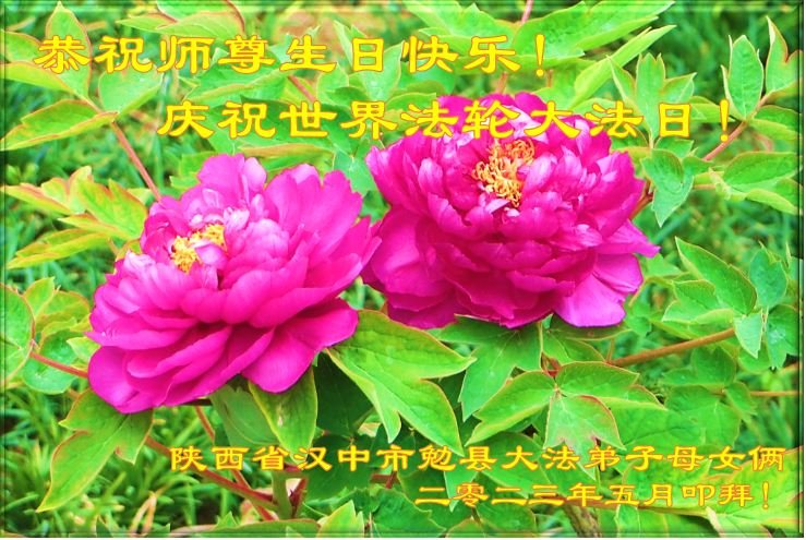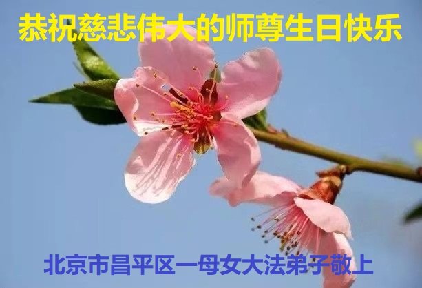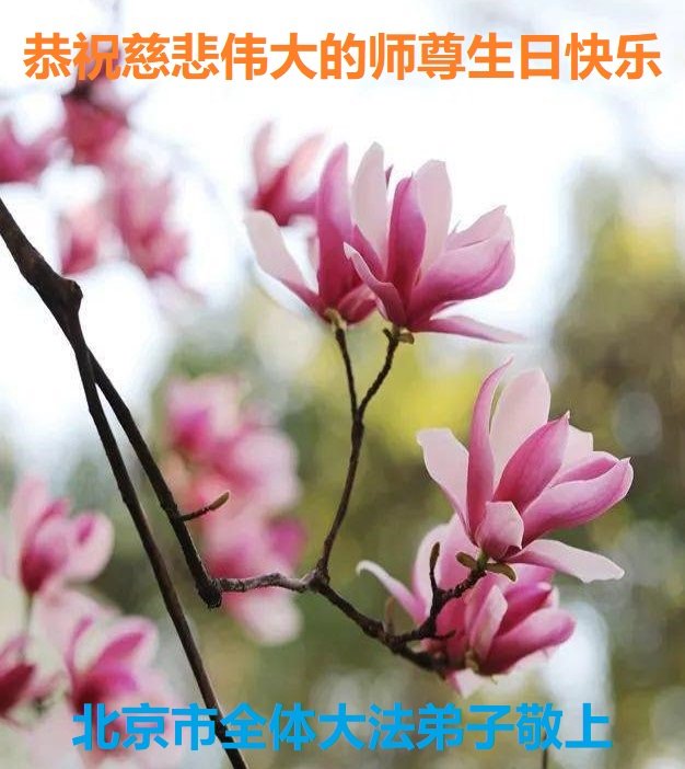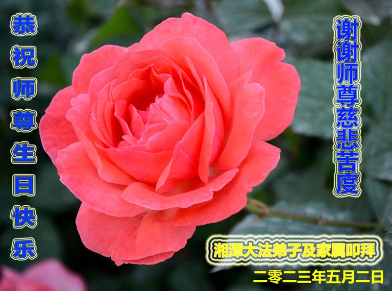 尊敬的李大师好!我是大法弟子的家人。明媚的五月,春风送暖,百花盛开,姹紫嫣红,春意盎然,喜逢大师华诞,诚心恭贺李大师生日快乐!大师新年发表的《为什么会有人类》的文章,我拜读了,并且听了好多遍。这是大师赐予人类的宝物,深感大师佛恩浩荡!感谢大师的慈悲救度!我也要做一个正直、善良、知感恩的好人。我天天诚心敬念”法轮大法好、真善忍好”九字真言。有大师的护佑,我们都是幸运的,个个幸福安康。