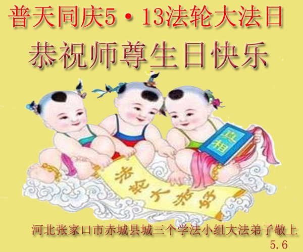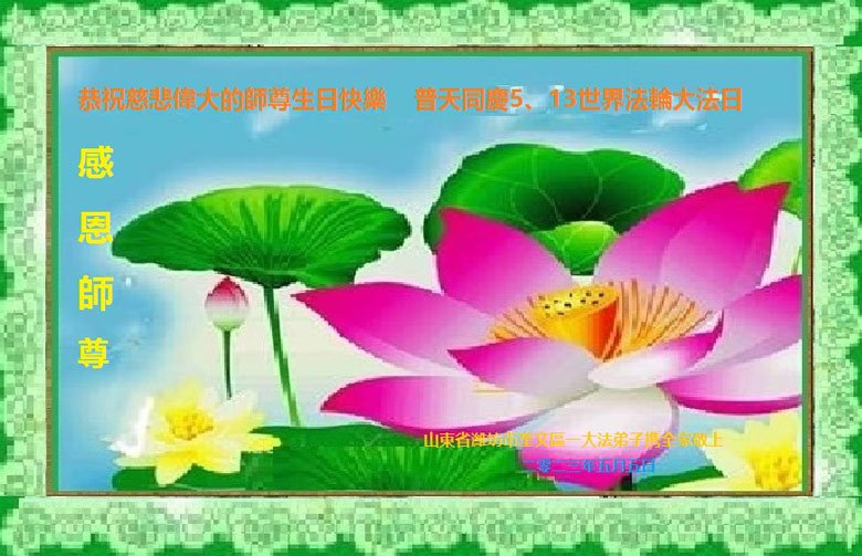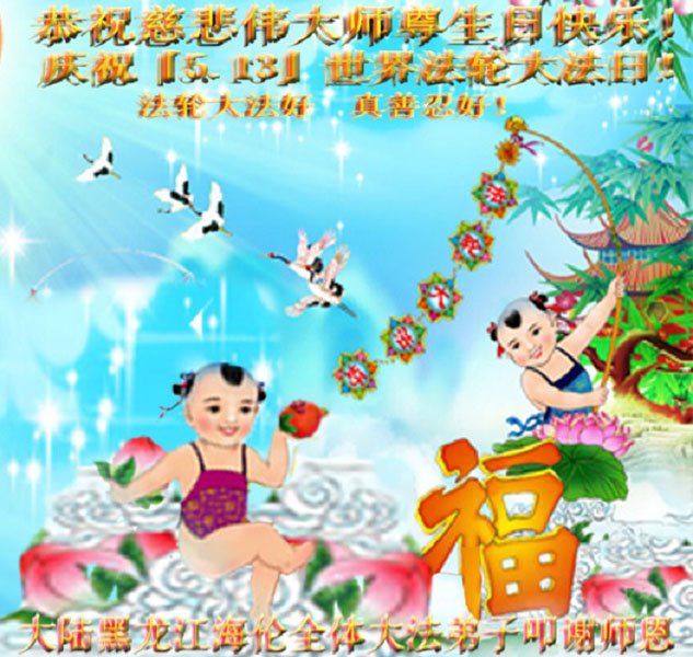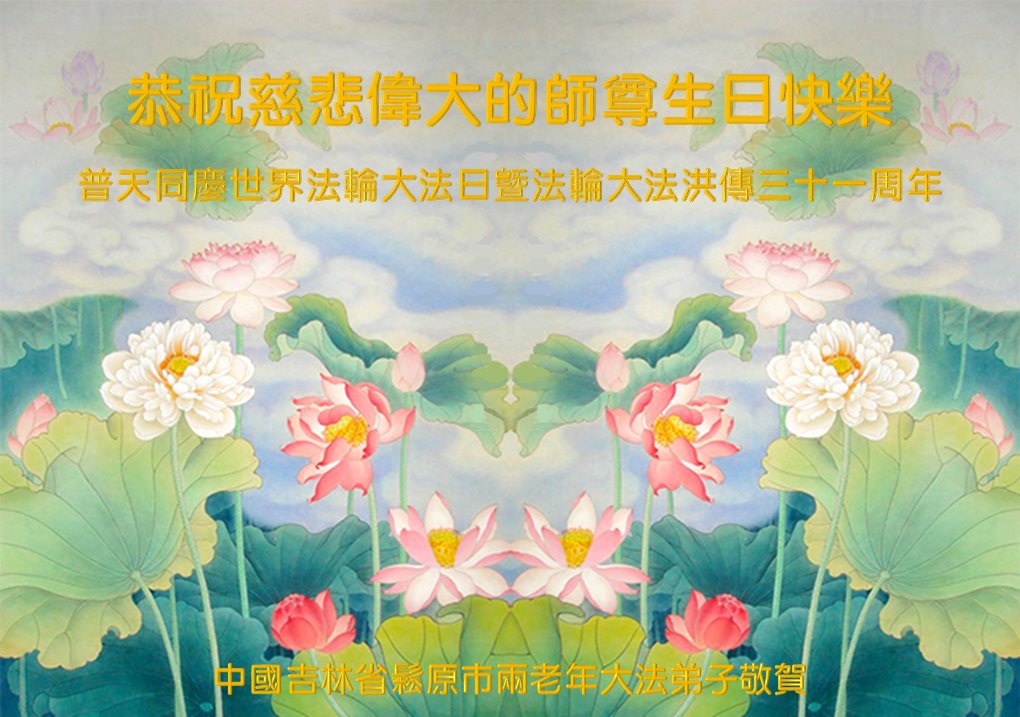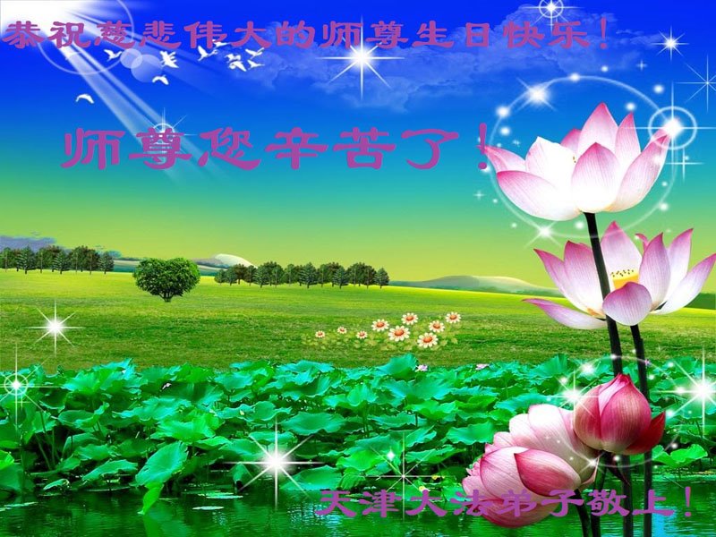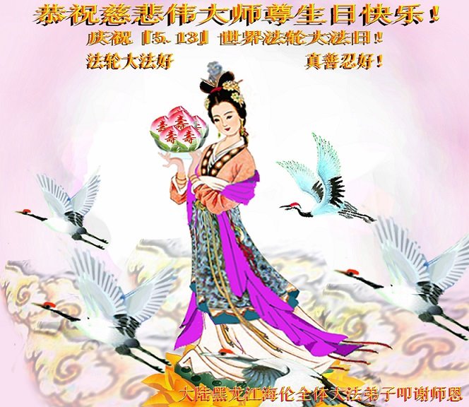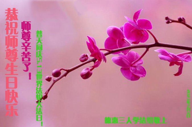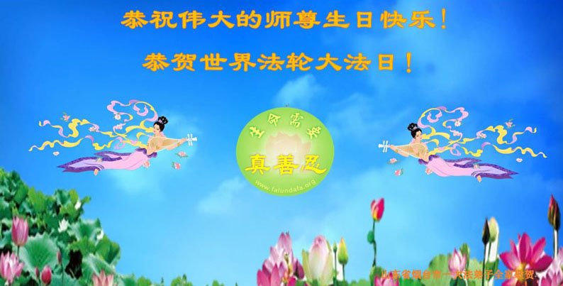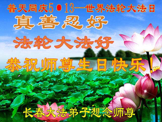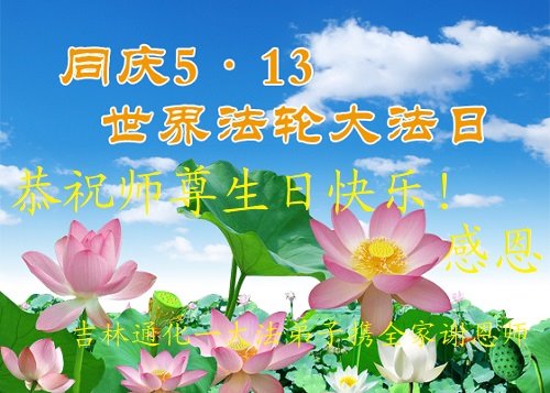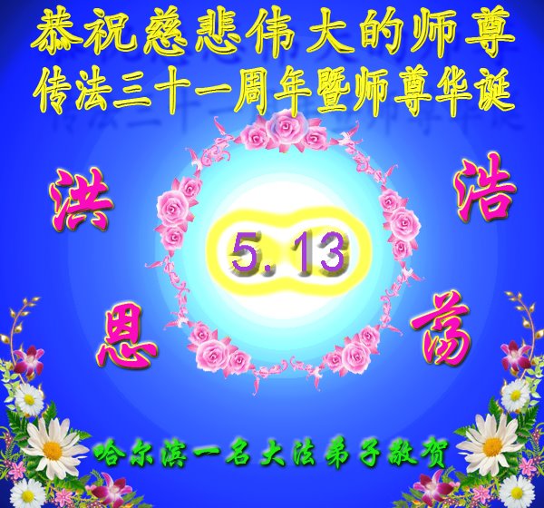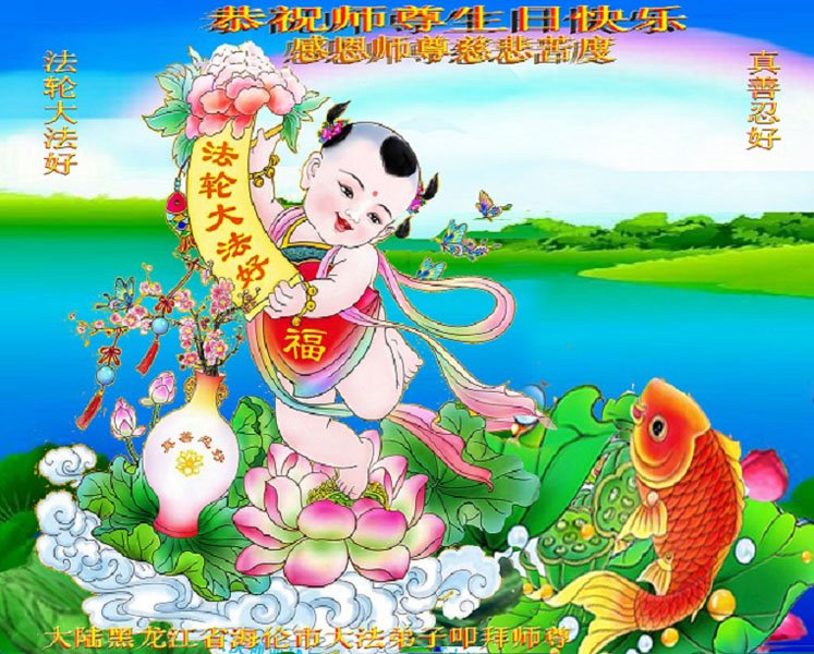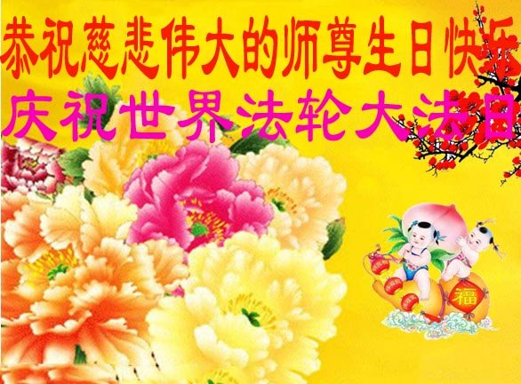 共同祝愿法轮大法永远洪传世界!恭祝慈悲伟大的李洪志大师生日快乐!