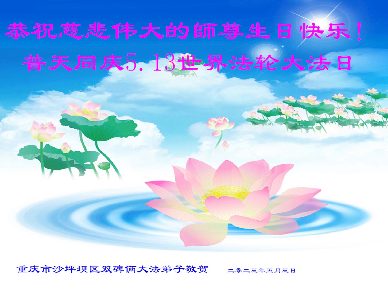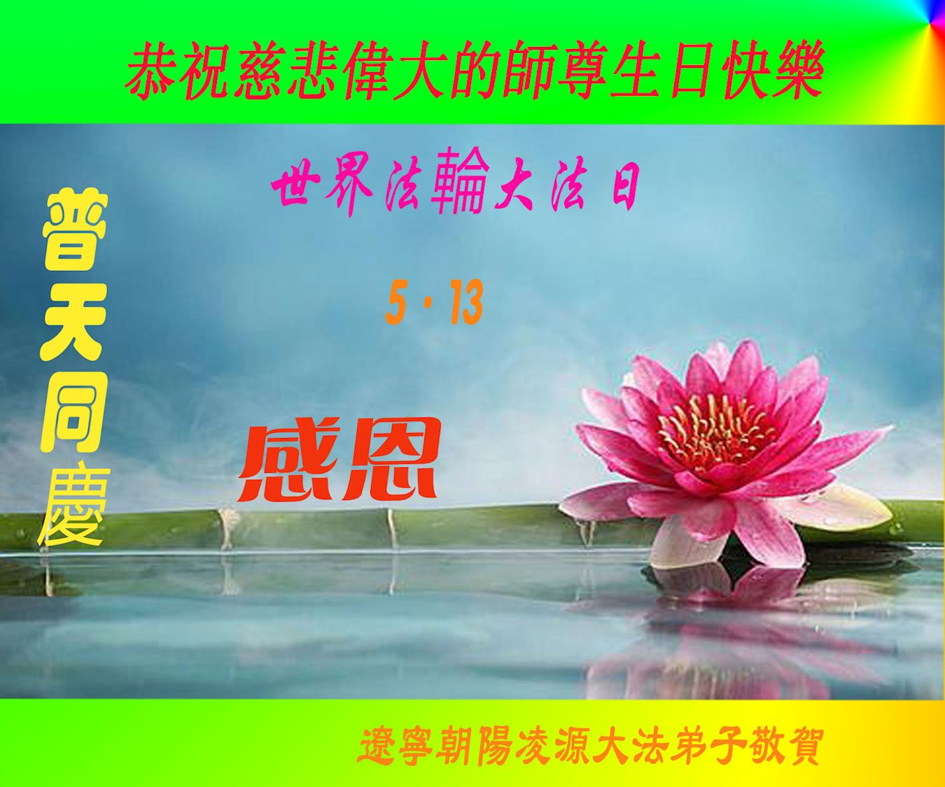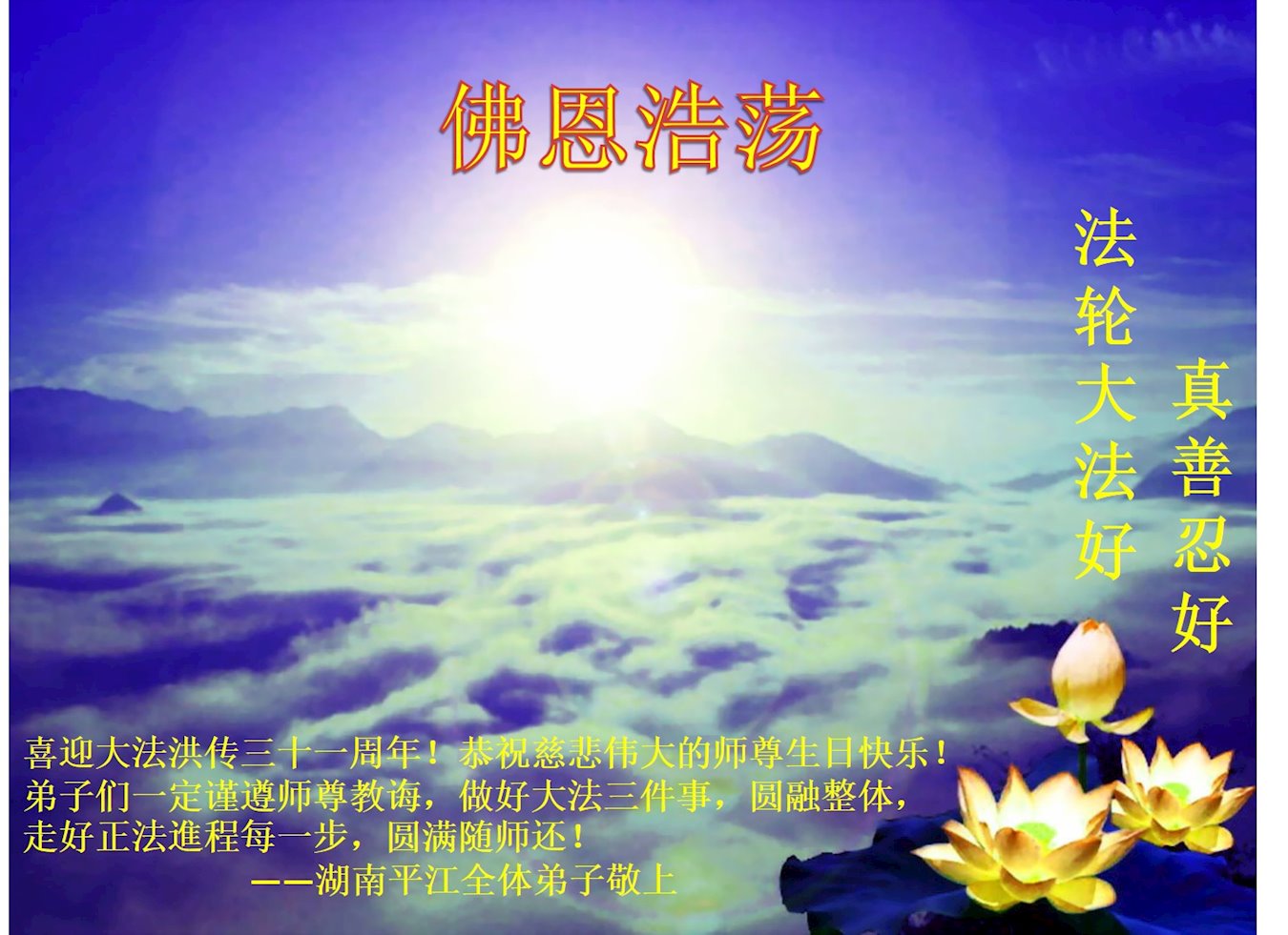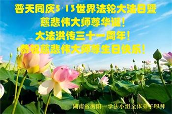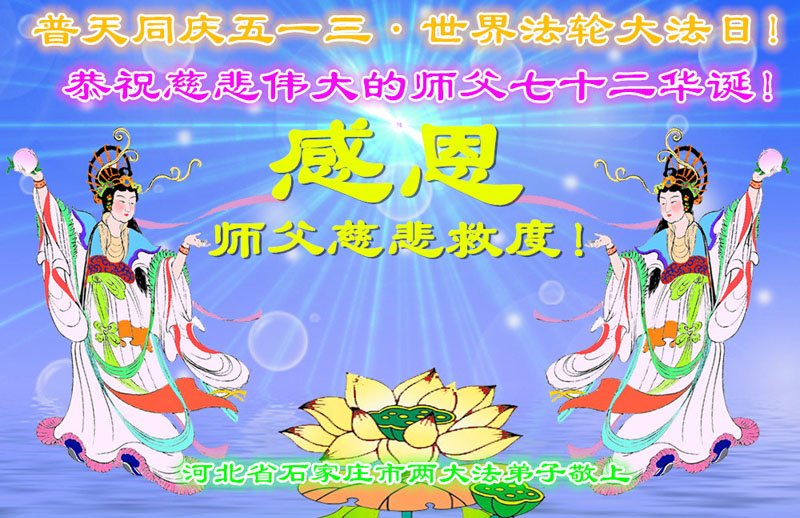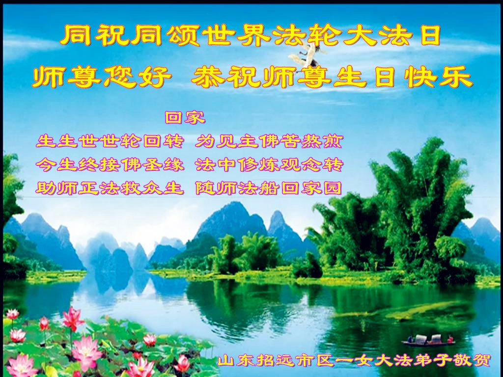共同祝愿法轮大法永远洪传世界!恭祝慈悲伟大的李洪志大师生日快乐!