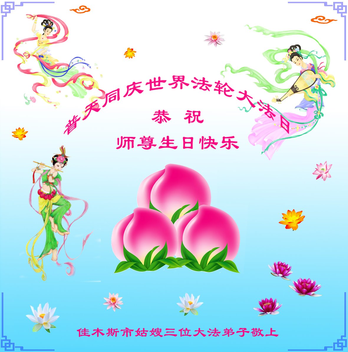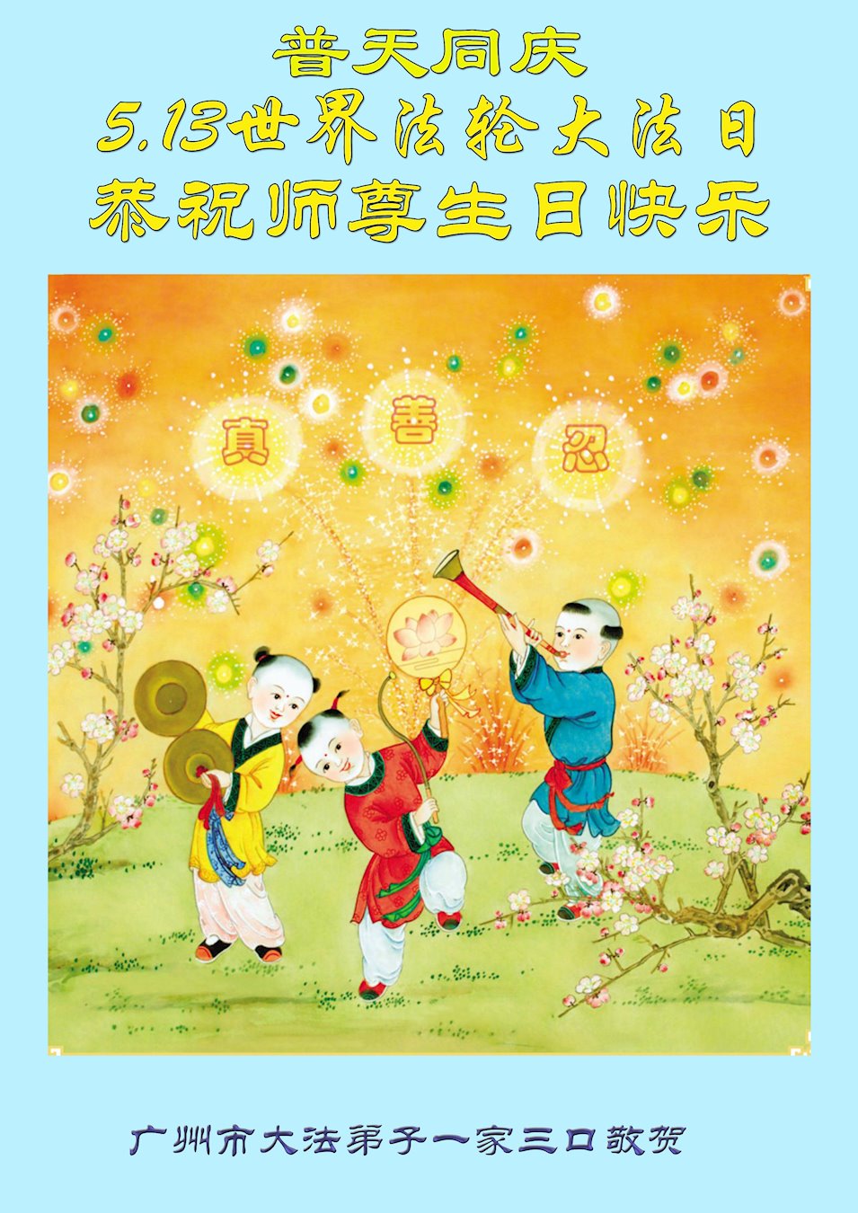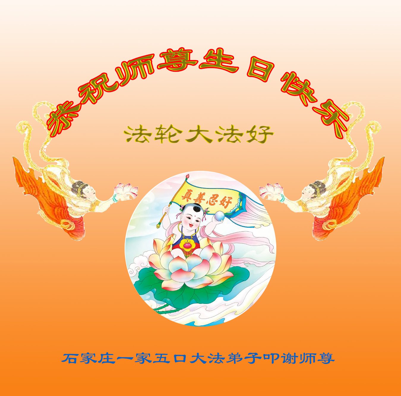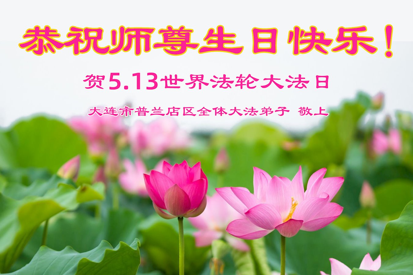 共同祝愿法轮大法永远洪传世界!恭祝慈悲伟大的李洪志大师生日快乐!