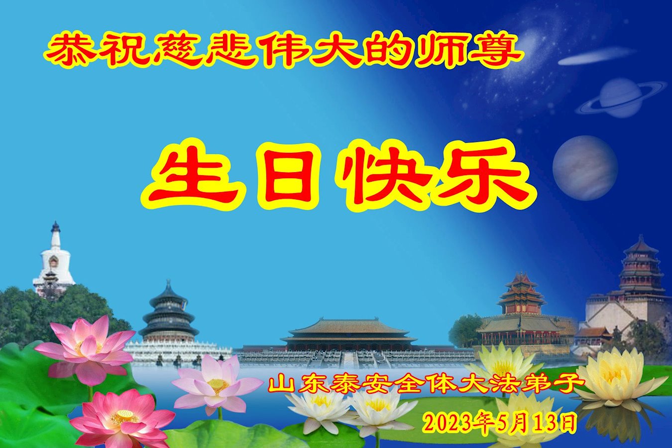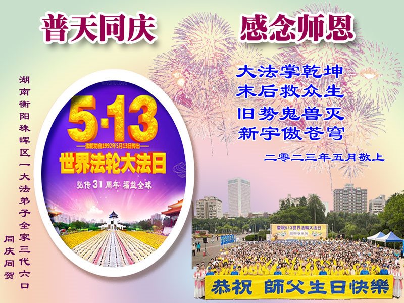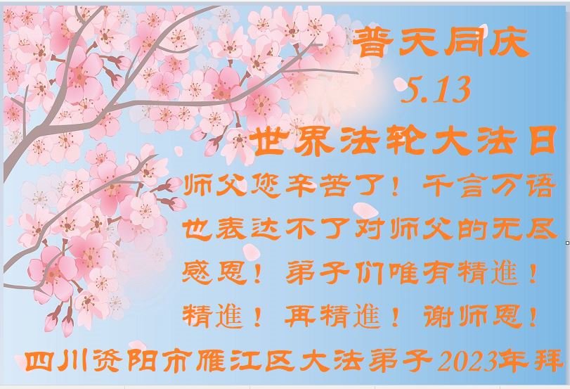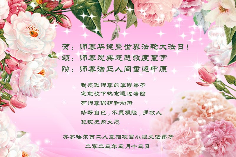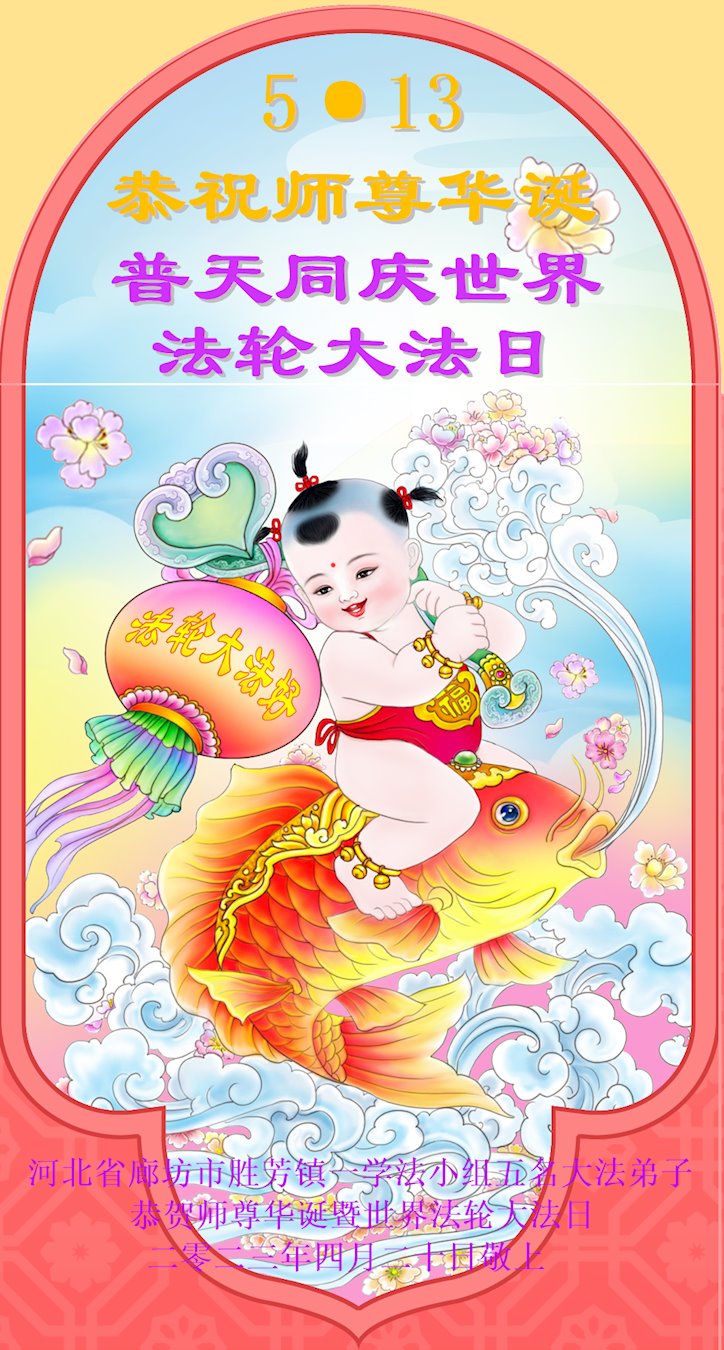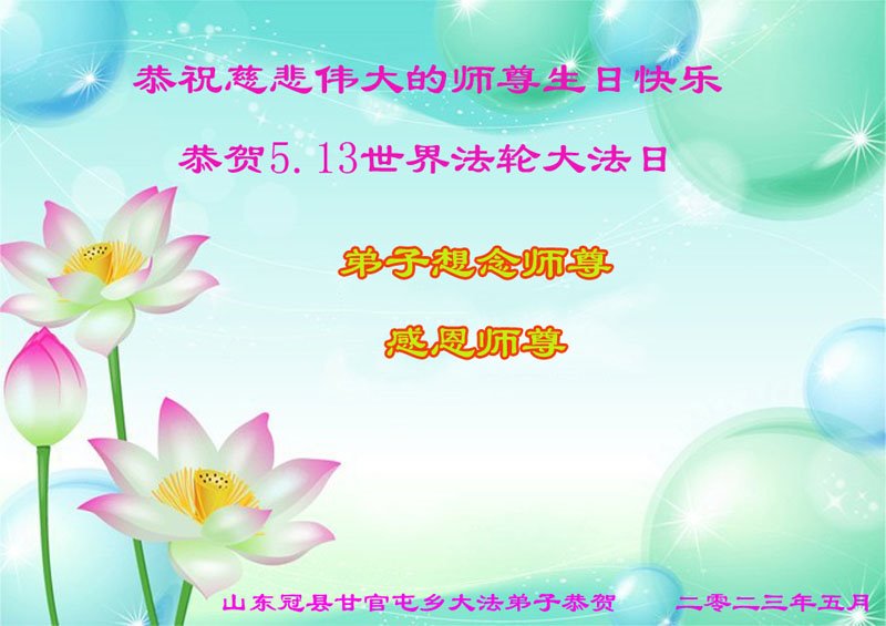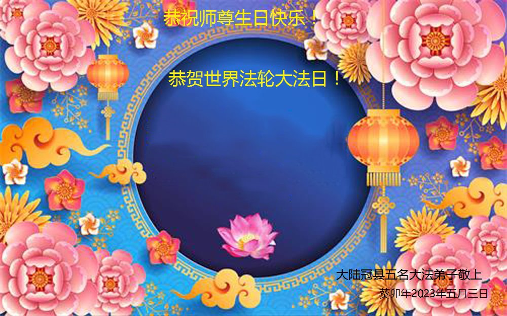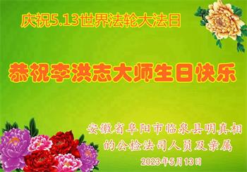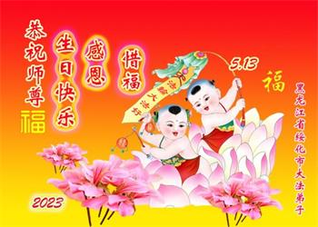 <英文版: https://en.minghui.org/html/articles/2023/5/12/208703.html>中国公检法司、军队大法弟子恭贺师尊华诞