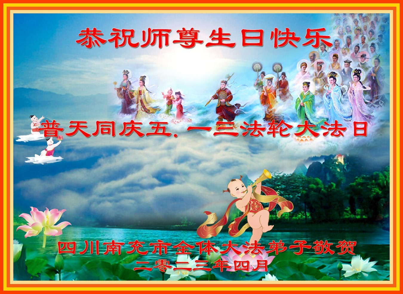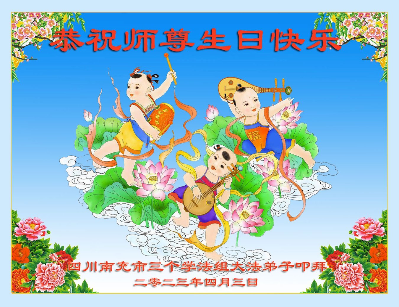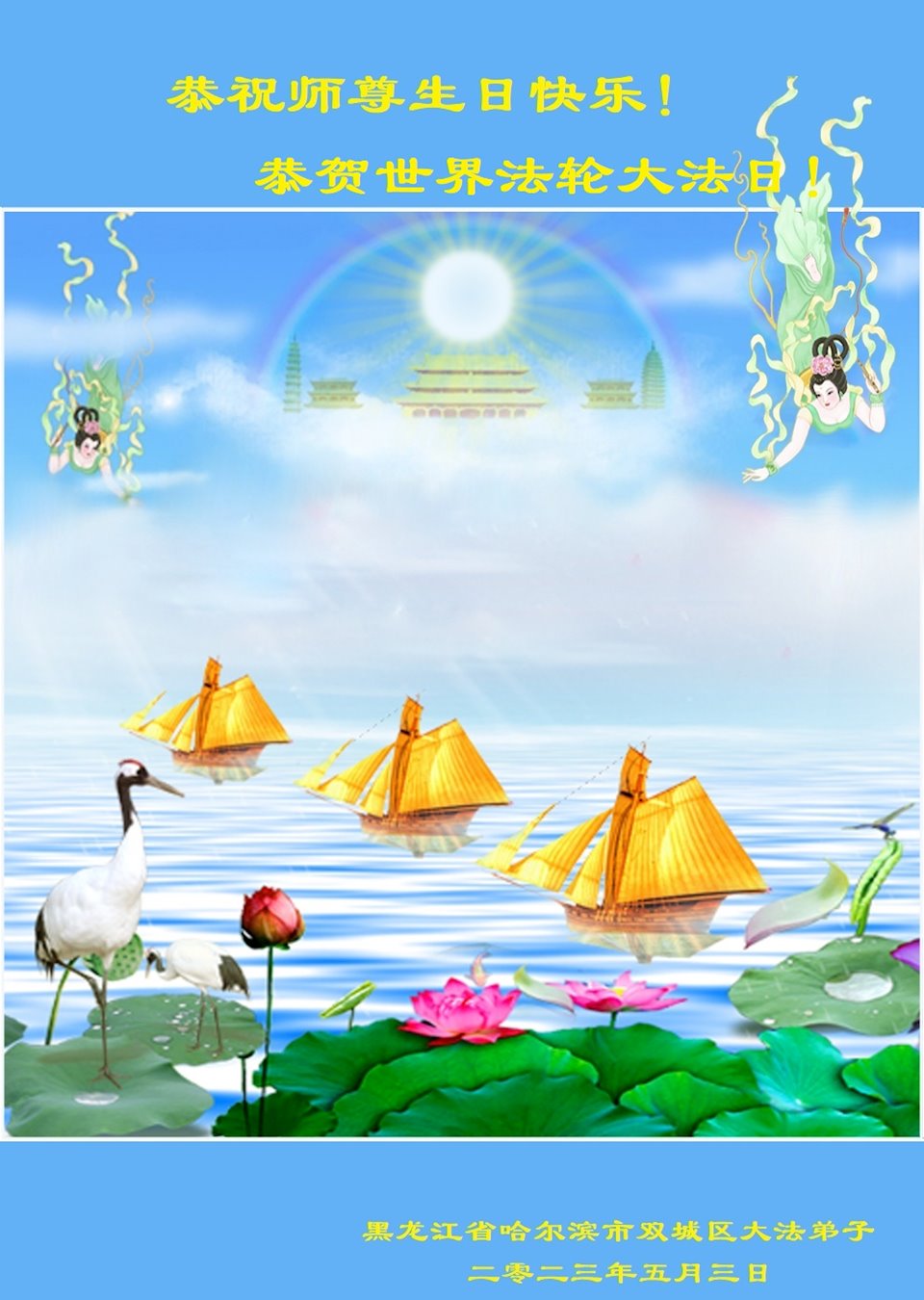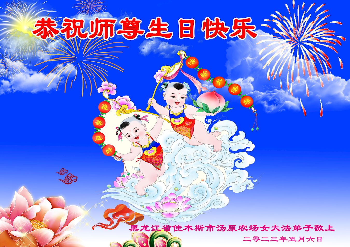 <英文版: https://en.minghui.org/html/articles/2023/5/12/208703.html>中国公检法司、军队大法弟子恭贺师尊华诞