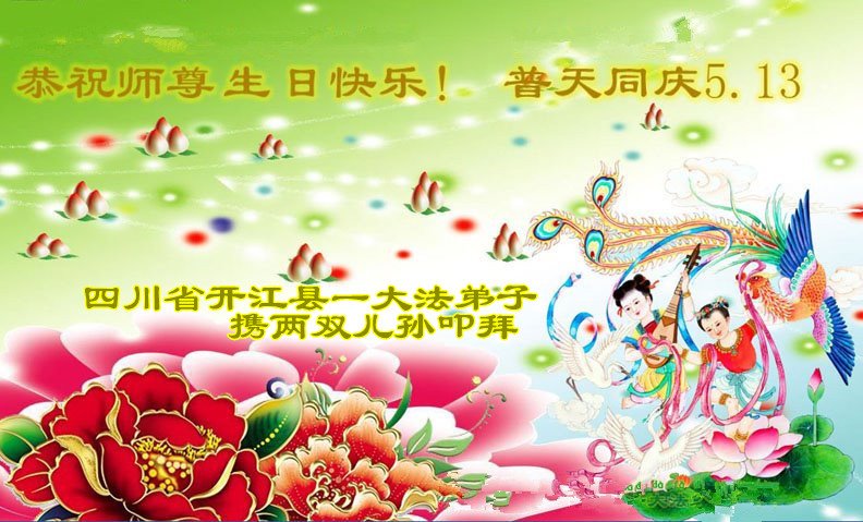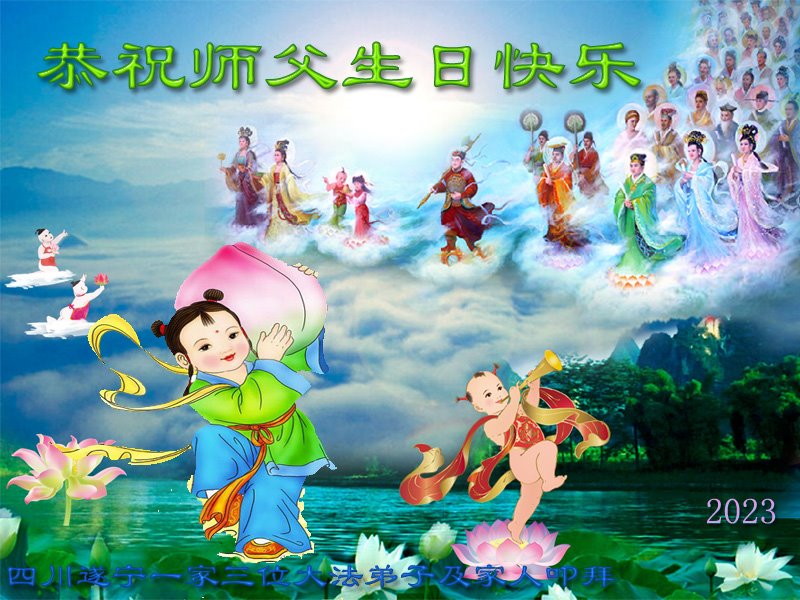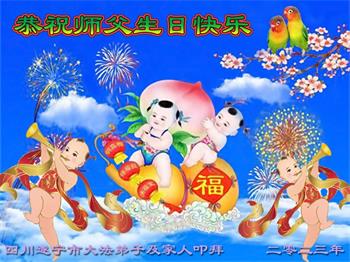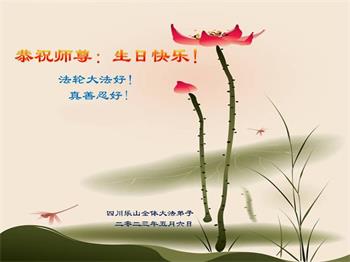 四川省大法弟子家人恭祝慈悲伟大的李大师生日快乐!