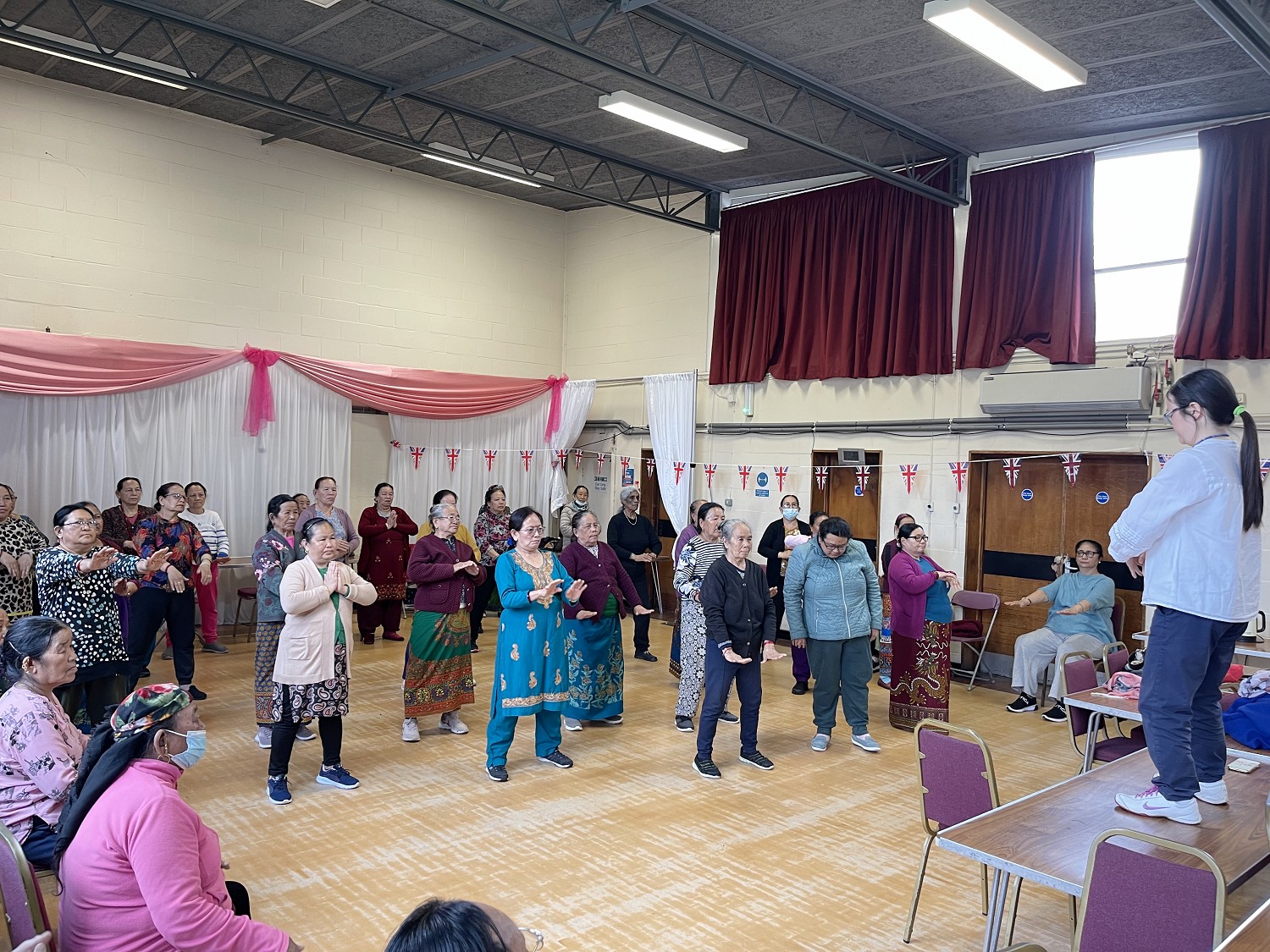 【明慧网二零二三年五月十二日】英国新国王于二零二三年五月六日举行登基加冕仪式。五月八日,英国法轮功学员应邀在东伦敦的格林登小区中心 (Glyndon Community Centre)参加午餐会,展示法轮功的五套功法。