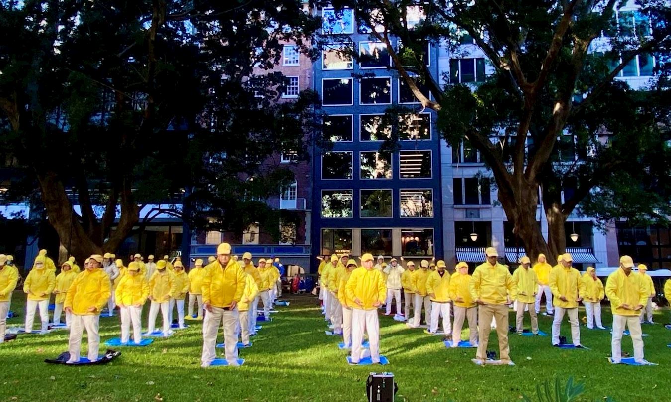 ![]() 图1:二零二三年五月九日,游行前,法轮功学员在悉尼市中心的温亚德(Wynyard)公园集体炼功,庆祝第二十四届“世界法轮大法日”及法轮大法弘传三十一周年。 |