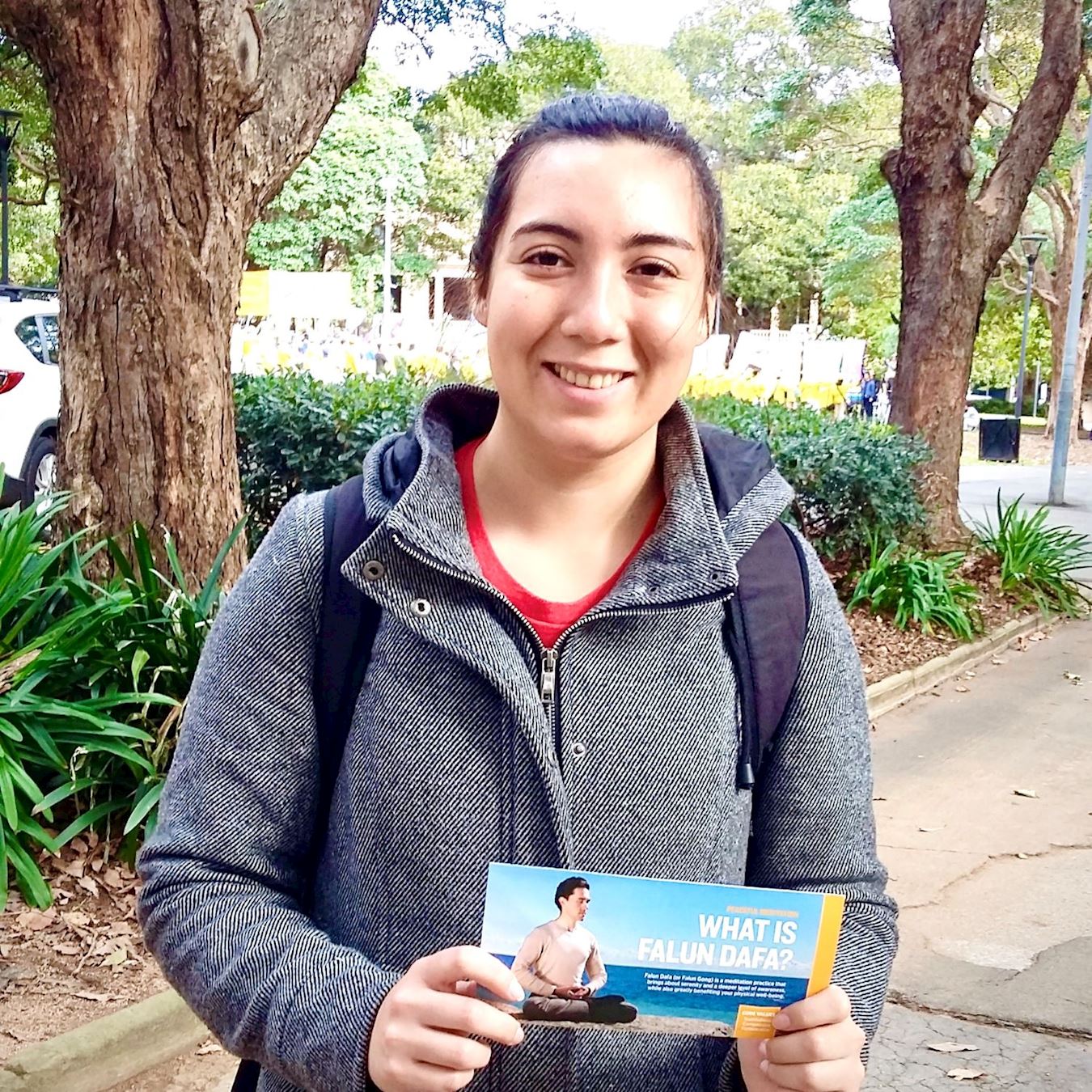 德米亚娜(Demiana Sannak)得知法轮大法修炼通过修身养性,提升人们内在修为,无私无我为人着想时,觉得太好了,这就是她在寻找的,表示要到当地炼功点去学炼法轮功。“我真想这么生活。我觉得法轮大法的真、善、忍能唤醒沉睡的世人,他们很需要被大法唤醒。人们需要用真、善、忍普世价值来互相学习,尊重不同文化,开阔思路。”