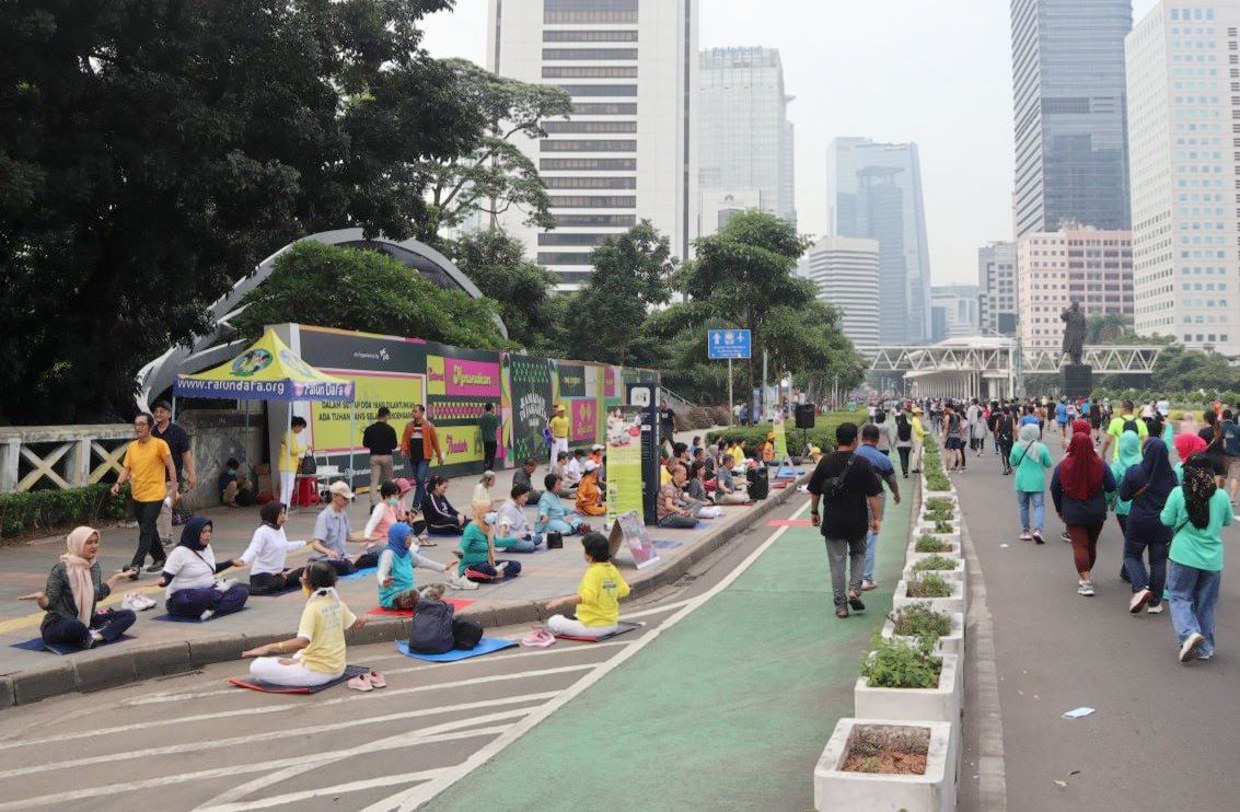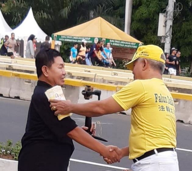 ![]() 图1:二零二三年五月七日雅加达法轮功学员在雅加达的商务中心苏蒂尔蔓街庆祝五月十三日世界法轮大法日。 |