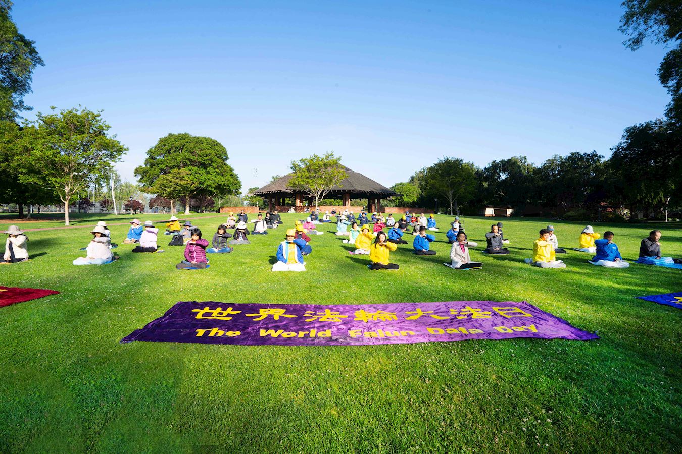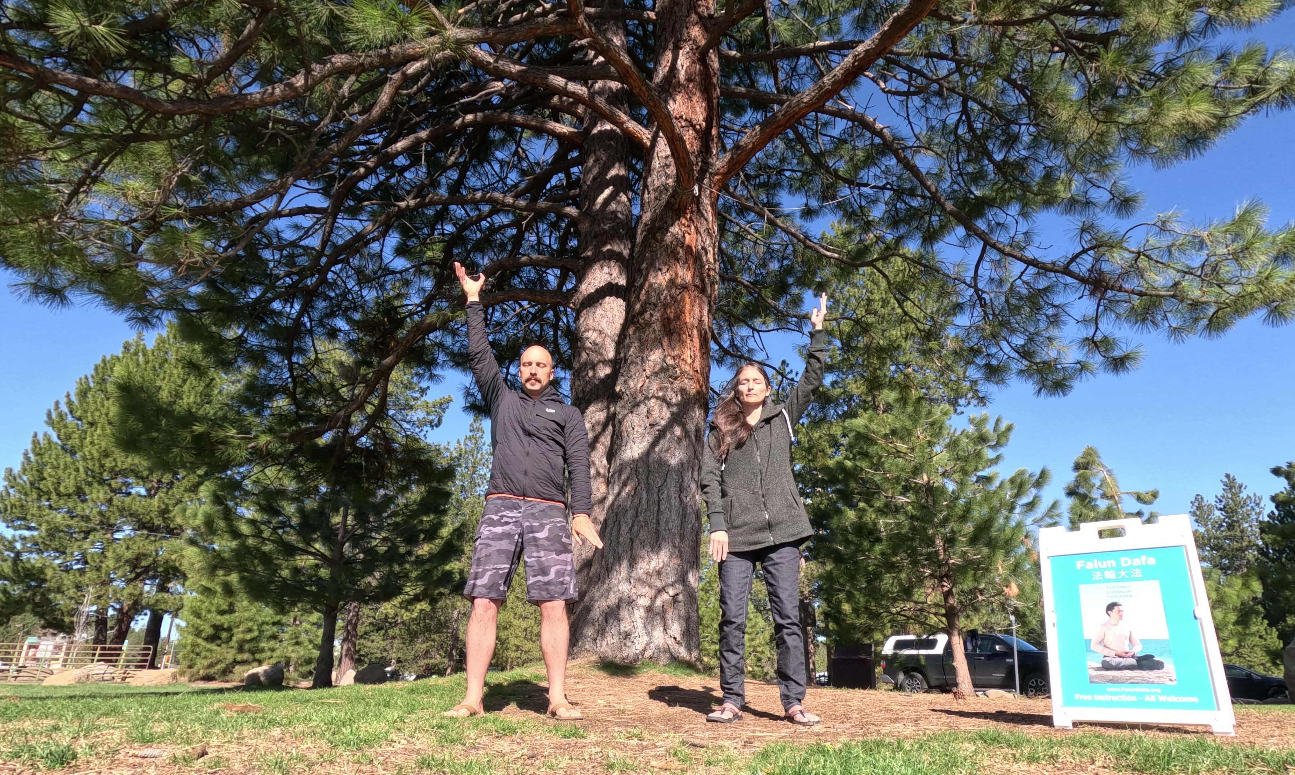 图21:二零二三年五月十三日,加州特拉基(Truckee)的西人弟子在公园炼功,庆祝世界法轮大法日。