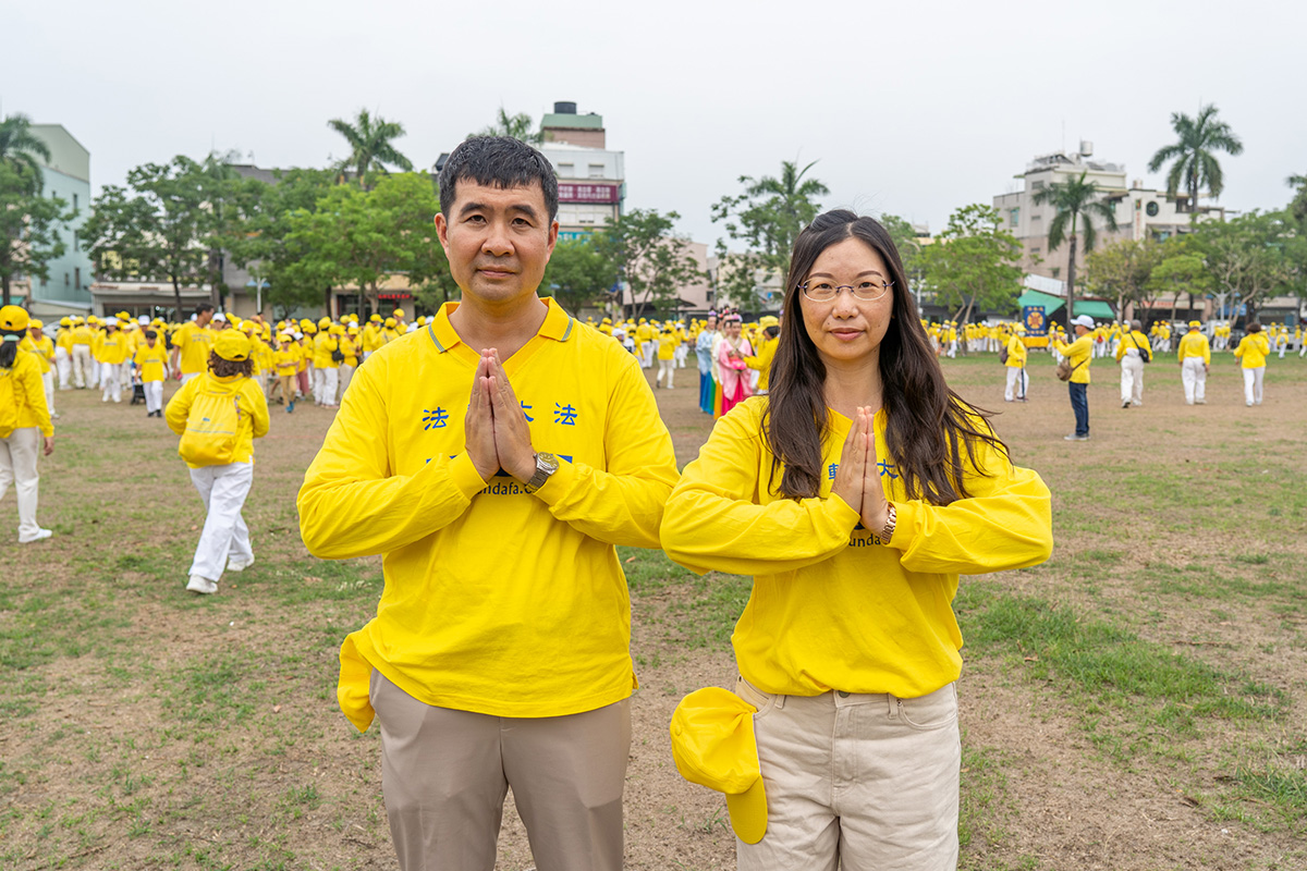 图4:工程师许添林夫妇,修炼法轮功十多年,全家受益良多。欣逢一年一度的世界法轮大法日,双手合十恭祝师尊福寿康泰。