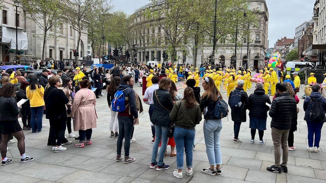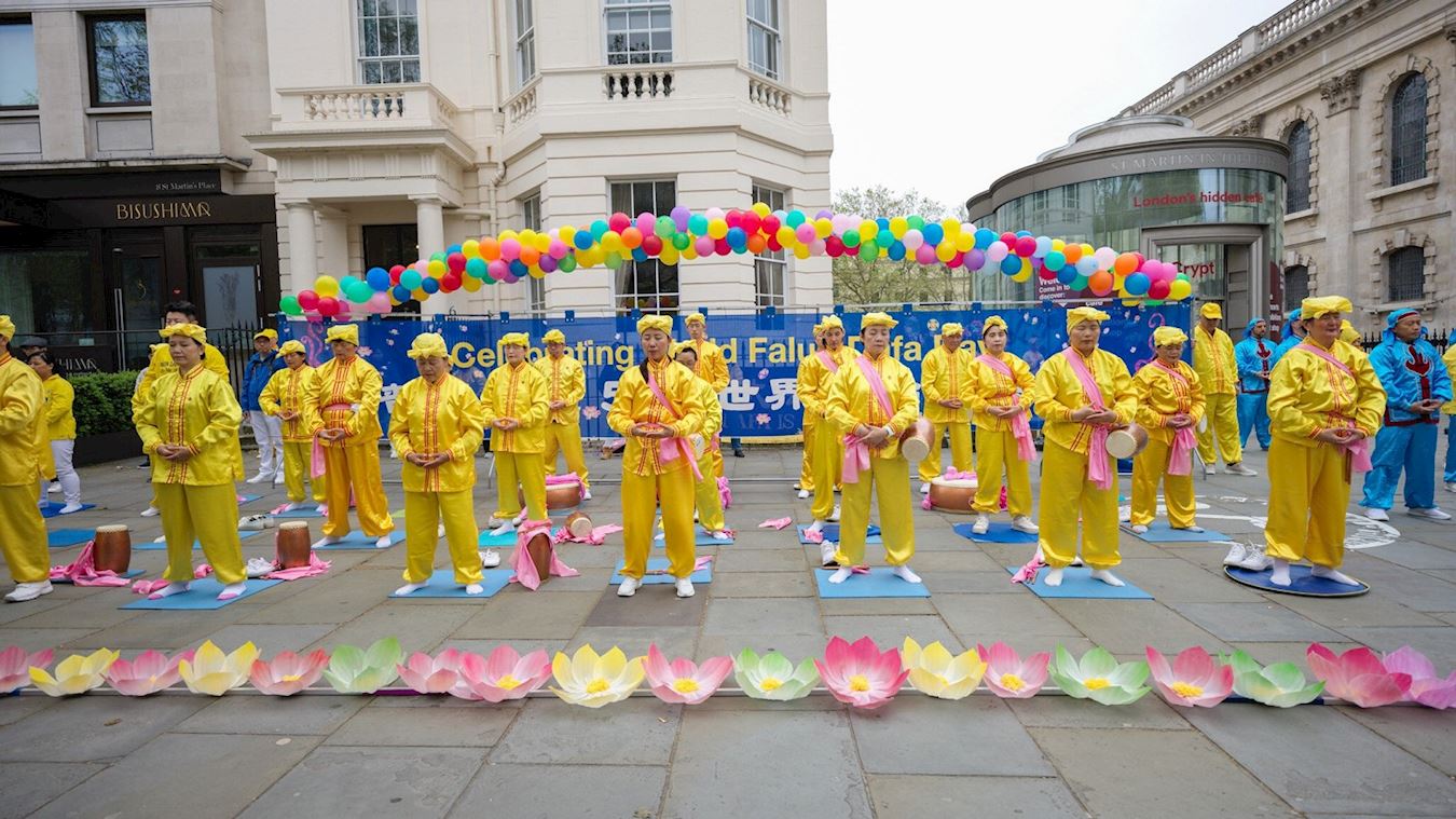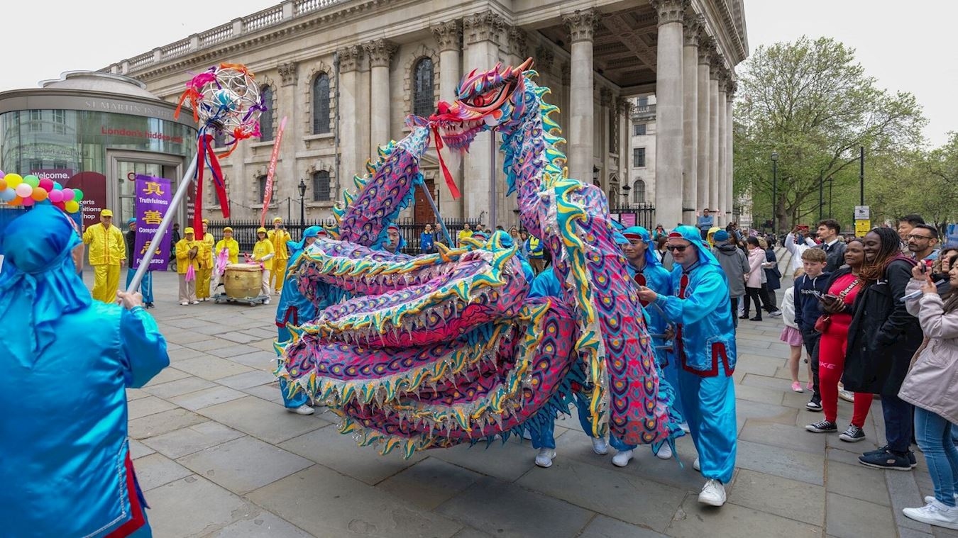 ![]() 图1~4:二零二三年五月十三日,英国法轮功学员在伦敦圣马丁广场庆祝世界法轮大法日,学员进行功法展示,舞龙队、腰鼓队的表演,恭贺师尊李洪志先生华诞。 |