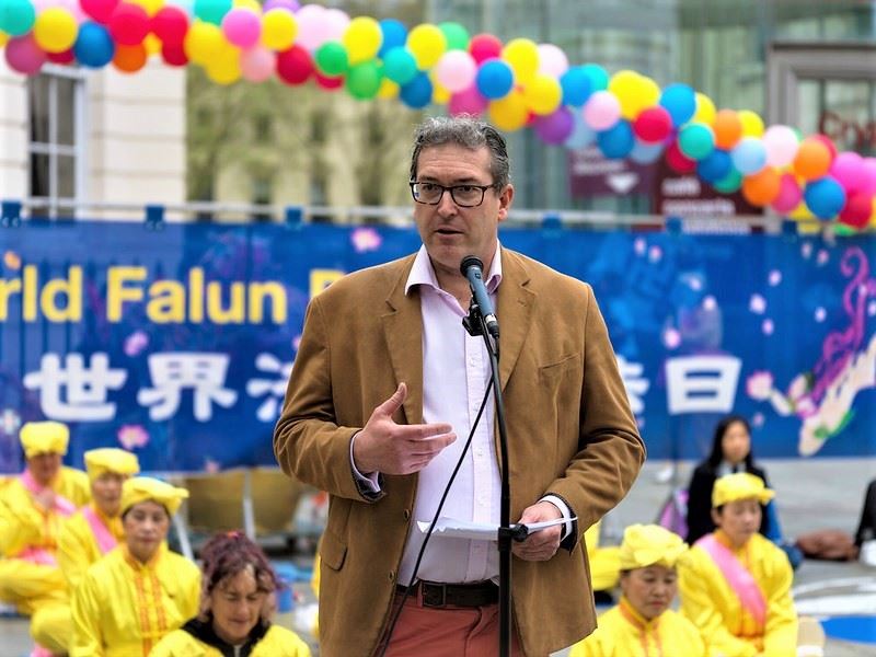 他还说:“在这个世界法轮大法日,让我们团结一致,超越差异,捍卫所有人的宗教自由和人权。共同努力,我们可以创造一个让真、善、忍原则蓬勃发展的世界,一个没有人因信仰而受到迫害的世界。”