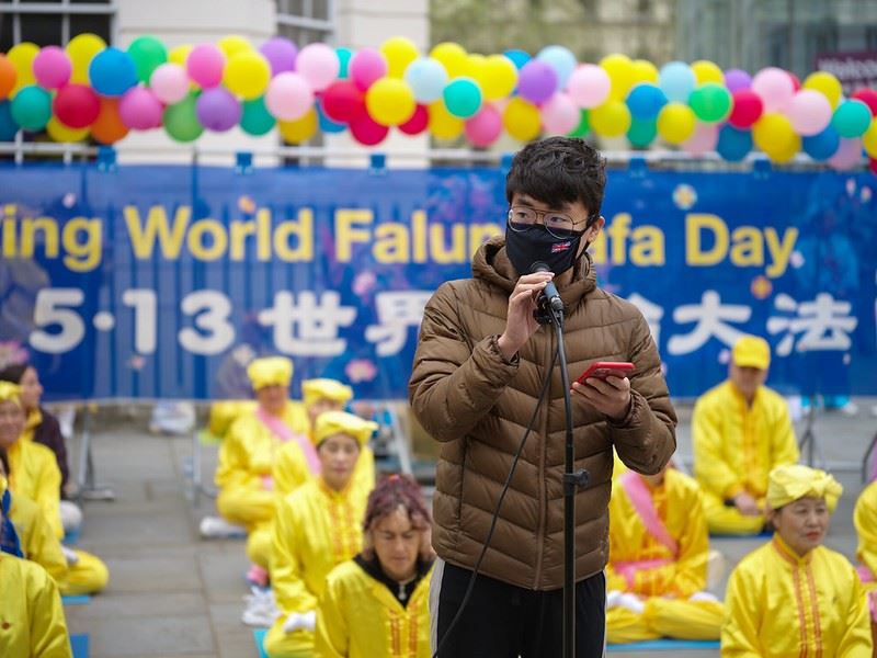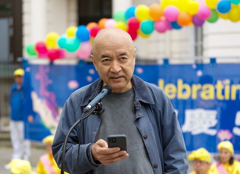 英国港侨协会创始人郑文捷也到场支持,他说:“在这个吉祥的日子里,我想向世界各地的法轮大法修炼者表示衷心的祝贺,并向他们表示我坚定不移的支持。”