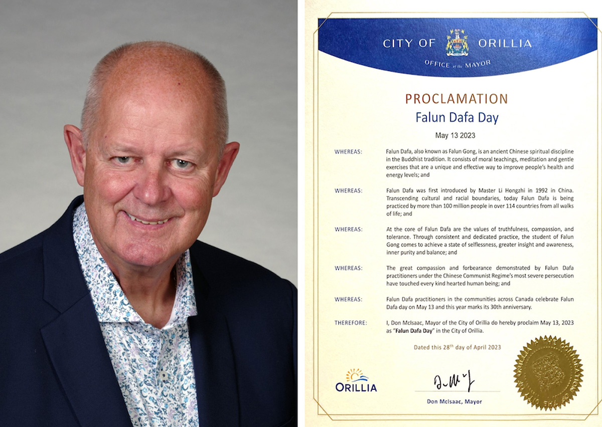 奥里利亚市(Orillia)宣布二零二三年五月十三日为“法轮大法日”