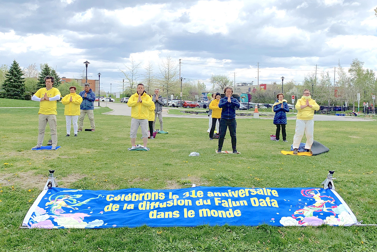 ![]() 图1~2:二零二三年五月十三日,加拿大魁省舍布鲁克部份法轮功学员以集体炼功的方式,庆祝世界法轮大法日暨法轮大法弘传三十一周年,并恭祝法轮大法创始人李洪志师父华诞。 |