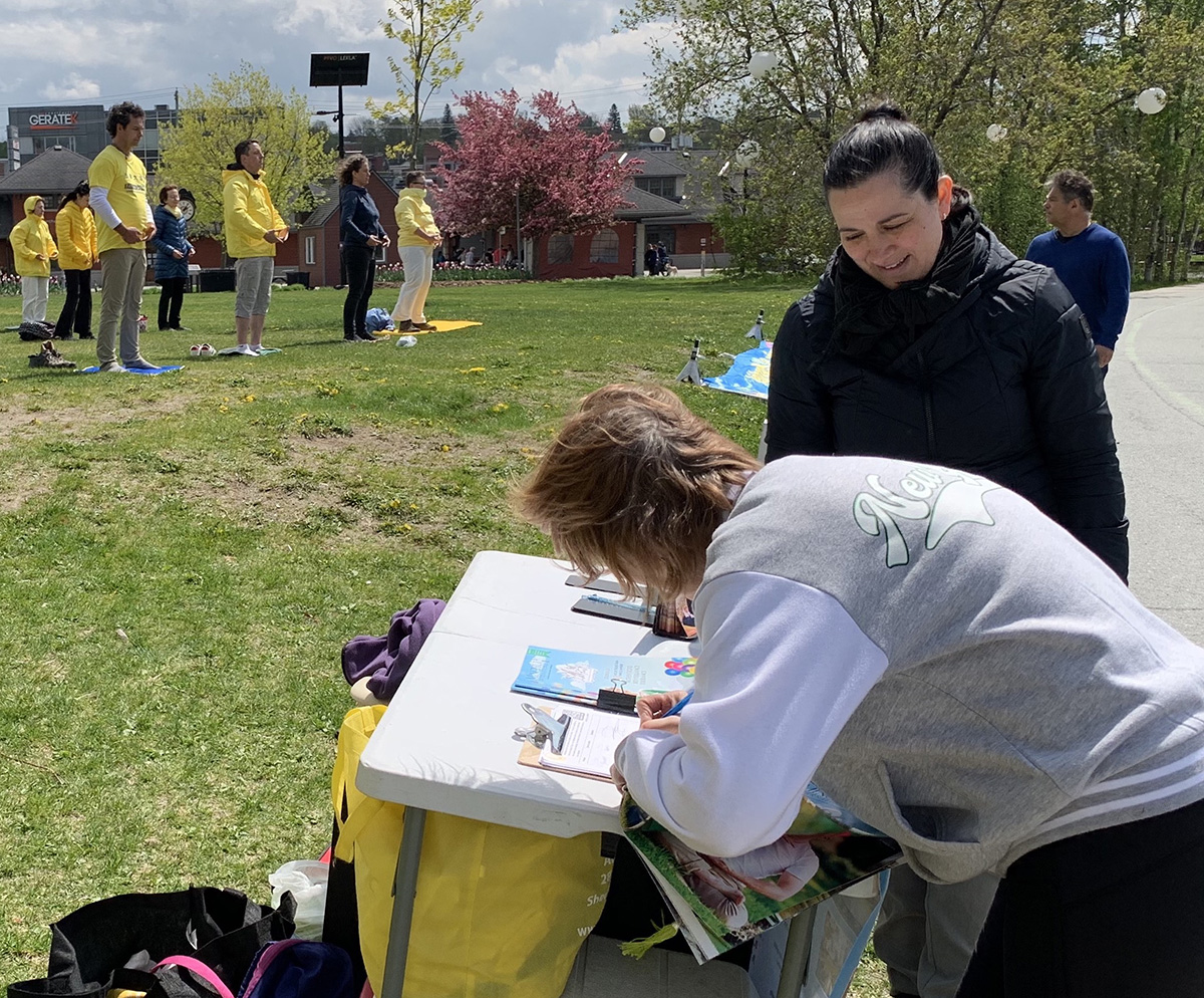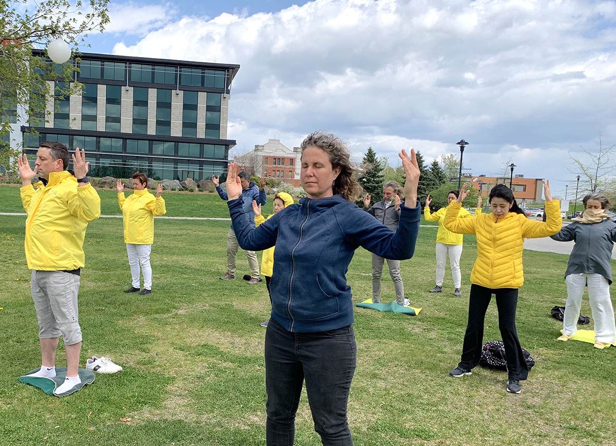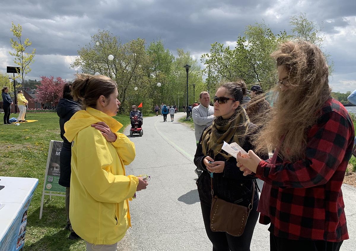 舍布鲁克位于魁北克东南部,是一座以湖泊和大学城为特色的秀丽小城。法轮功学员在马格戈湖边,伴随着悠扬的音乐声中炼功,与民众分享法轮大法的美好。祥和的场面和真善忍的理念受到民众的喜爱。
