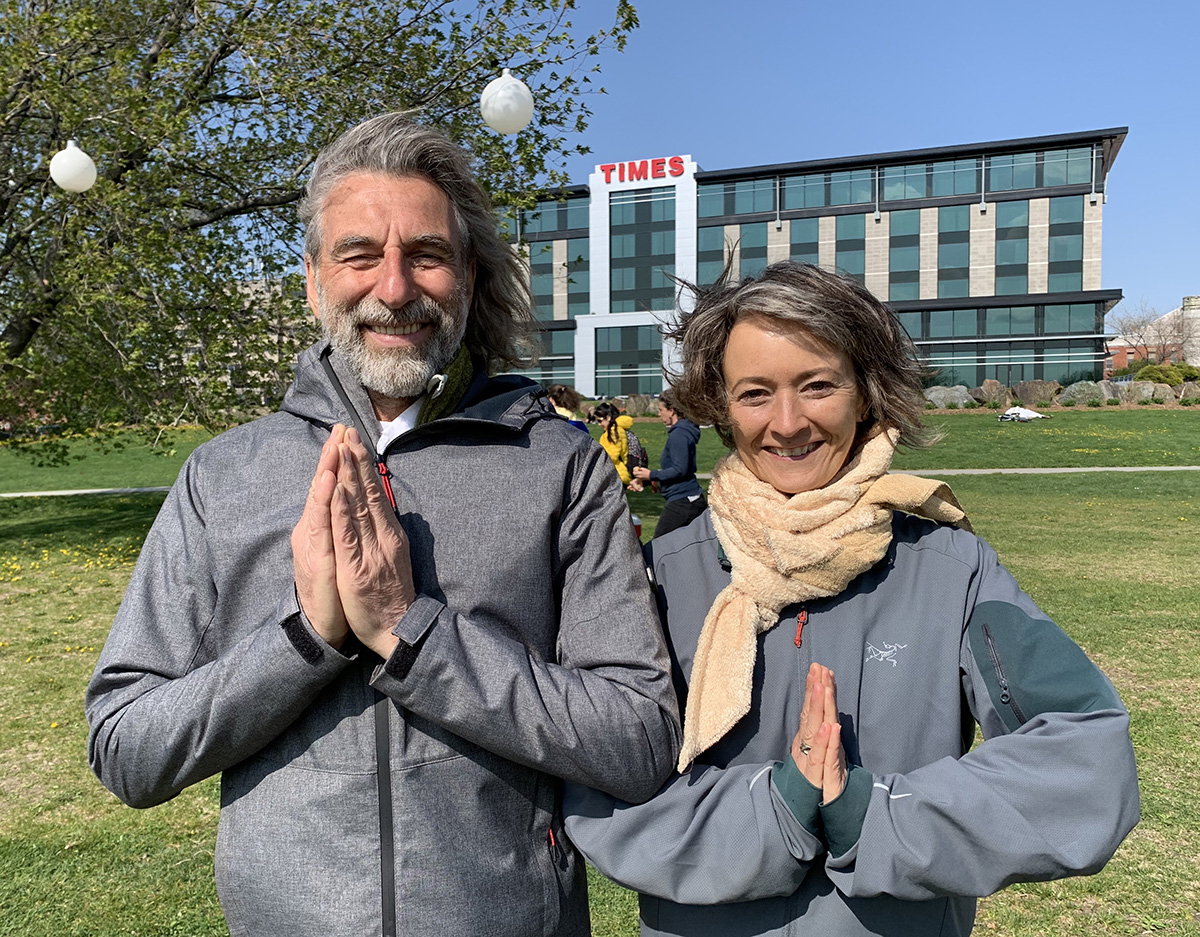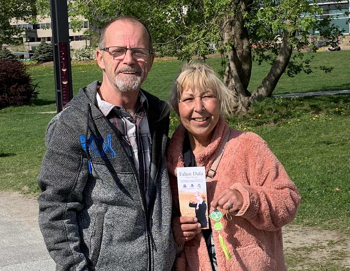 来自圣-亚德良(St-Adrien)的法轮功学员露西(Lucie Gagnon)和德尼(Denis Cantin)修炼时间不长。他们心中充满喜悦,来参加庆祝活动。