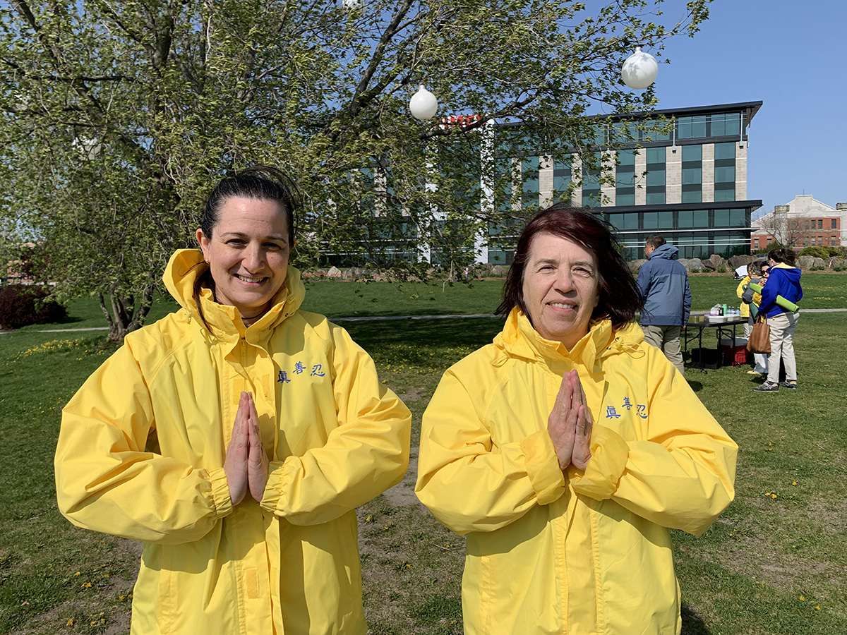 舍布鲁克市民海伦娜(Helene Blais)和侄女玛丽-皮埃尔(Marie-Pierre)已有十二年。海伦娜说,修炼前她一直在找寻生活的方向,尝试了很多的、各种各样的方法,直到读到了《转法轮》,她的第一反应就是:这就是我等待的,这就是我一直寻找的。
