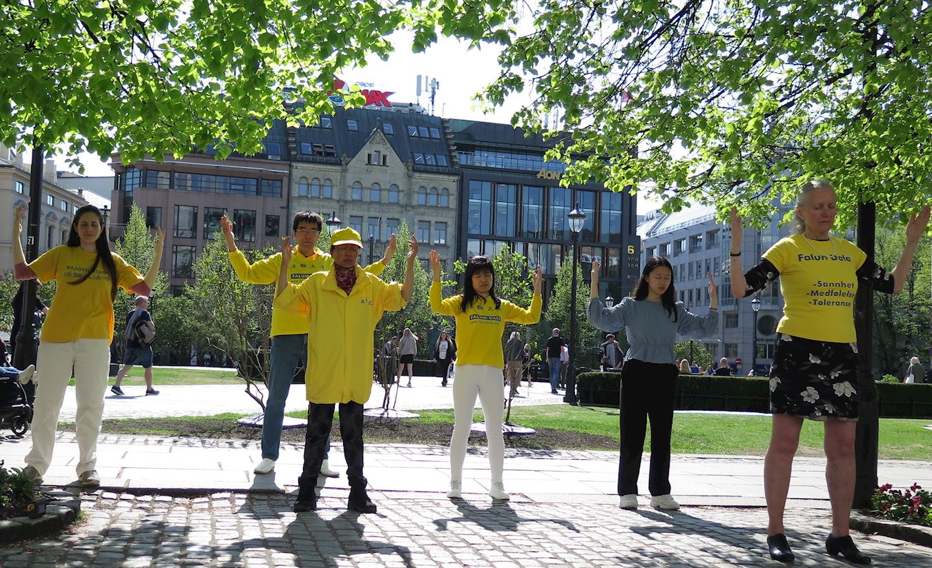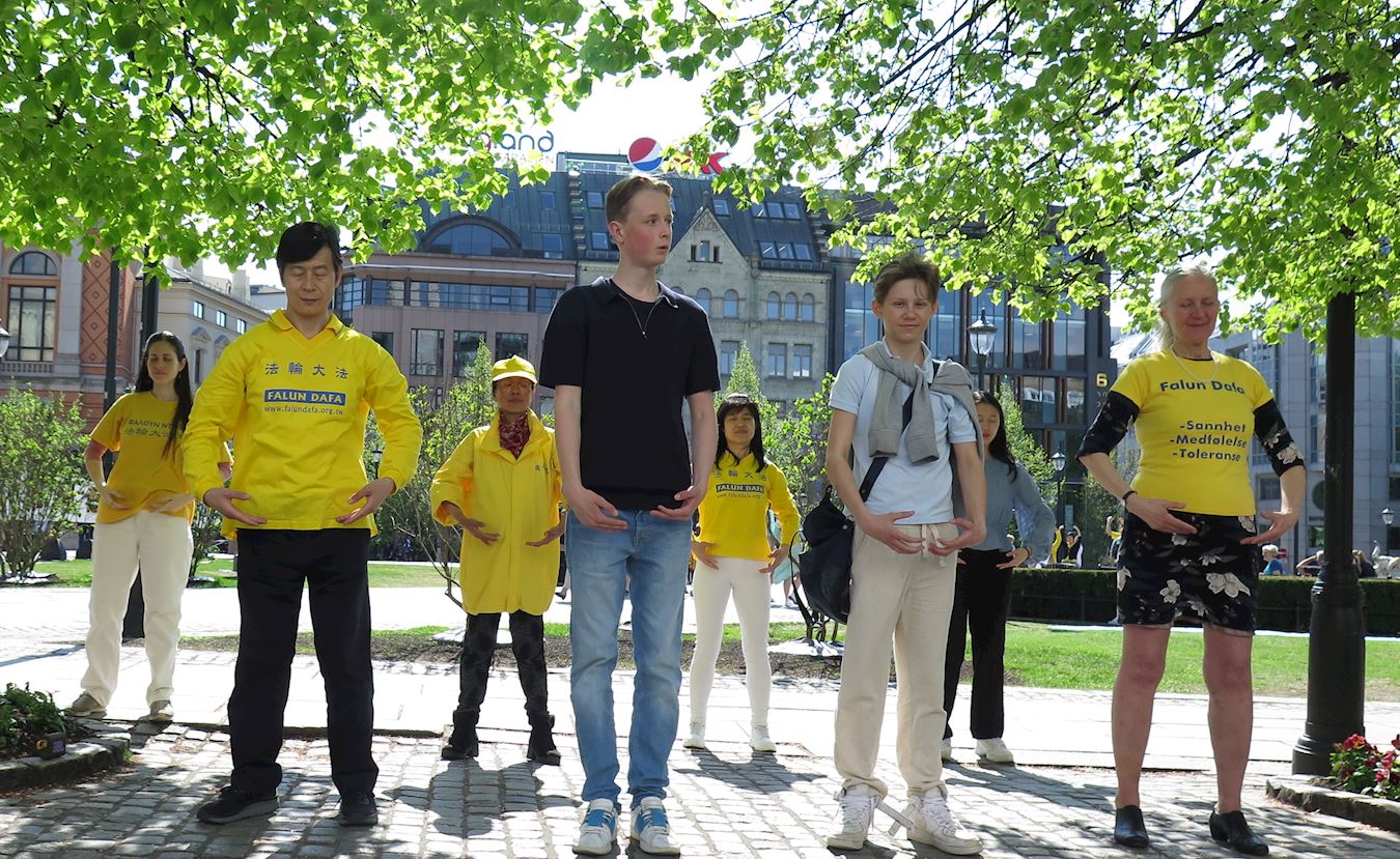 挪威法轮功学员在这一天与全球法轮功学员一起同喜共庆法轮大法弘传三十一周年,暨二十四届世界法轮大法日,恭贺法轮大法创始人李洪志先生的华诞!