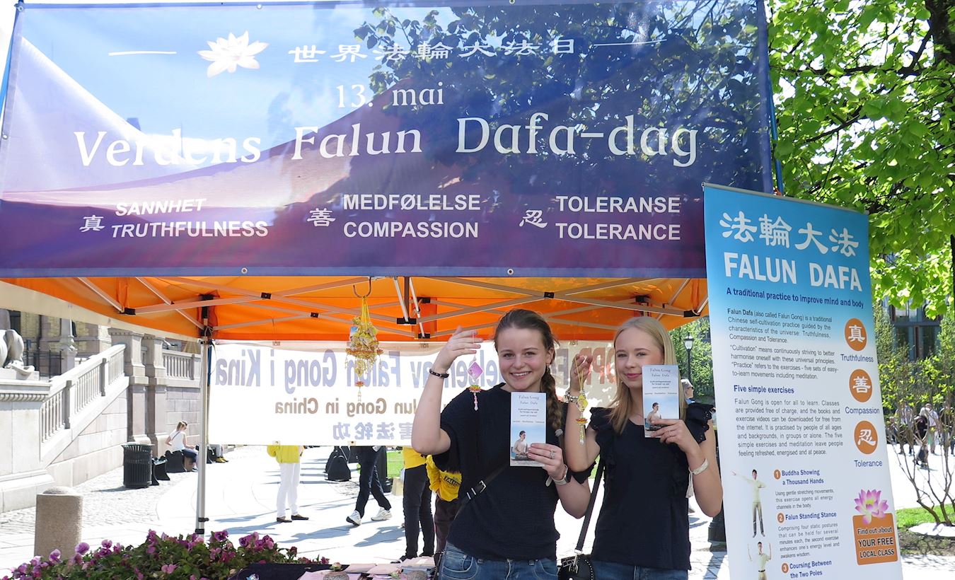 卡罗琳娜(Karoline)和泰亚(Thea)是好朋友,这天早些时候她们在社交媒体上看到关于世界法轮大法日的视频,对法轮功产生了兴趣。当她们在奥斯陆市中心看到法轮功学员在国会前的炼功场面时非常高兴,也觉得很神奇。她们萌生了学炼法轮功的心愿。她们带着法轮功的信息和学员赠送的莲花饰品高兴地离开了。